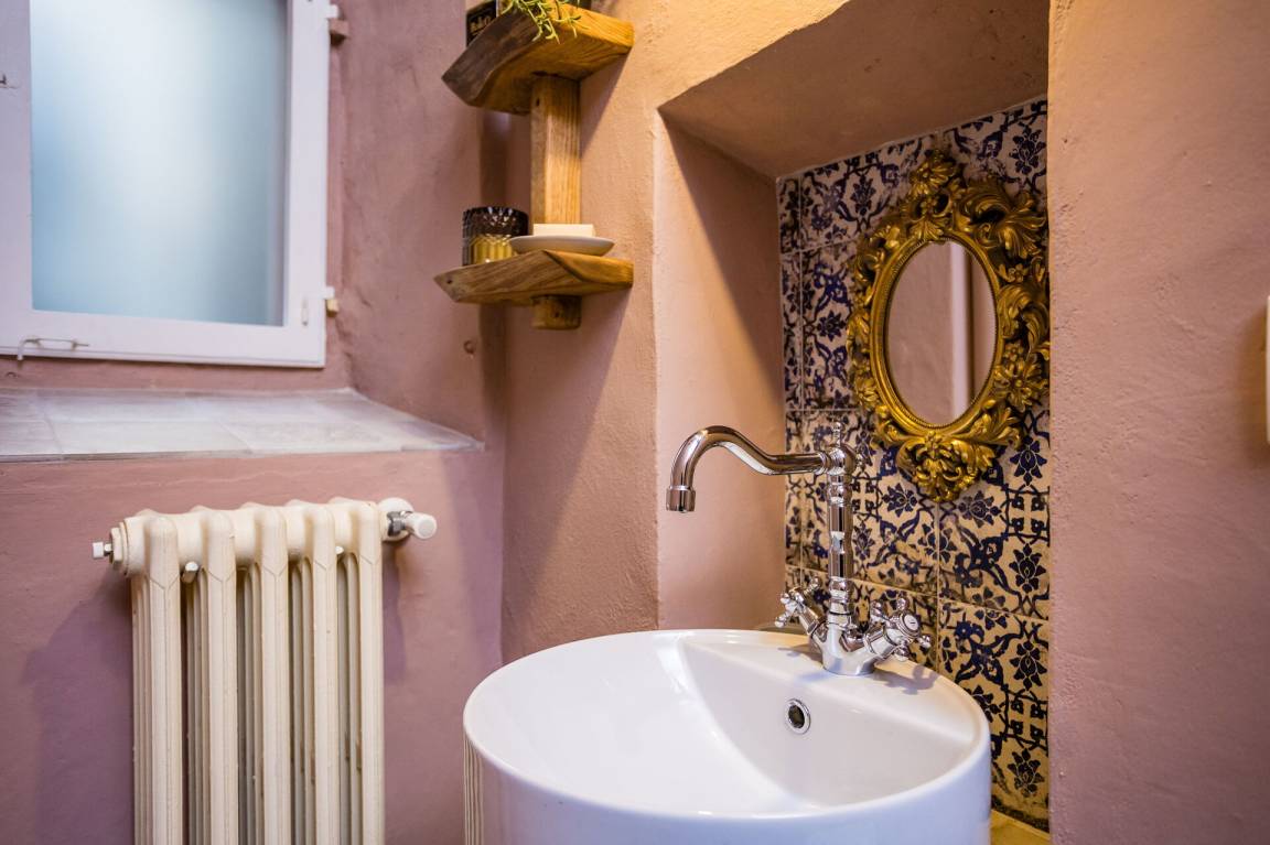 Badezimmer: Waschbecken, WC, Bidet, Dusche, Fön, Waschmaschine, WiFi Internet.