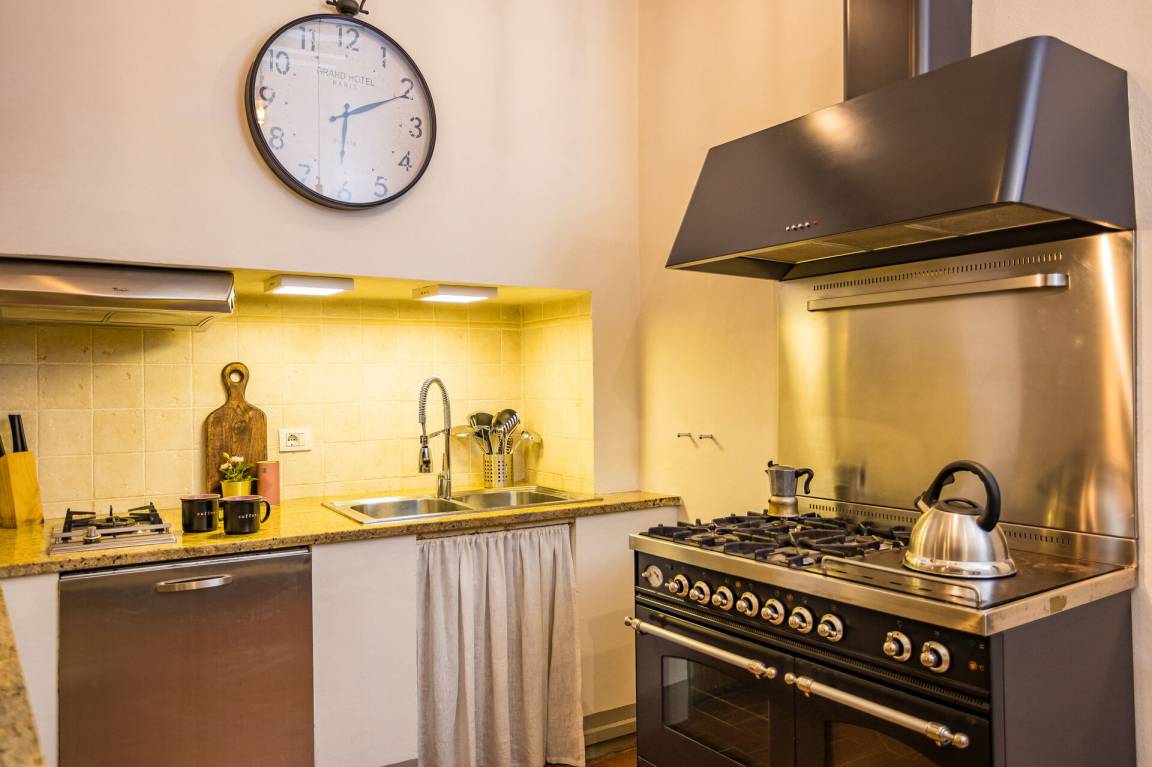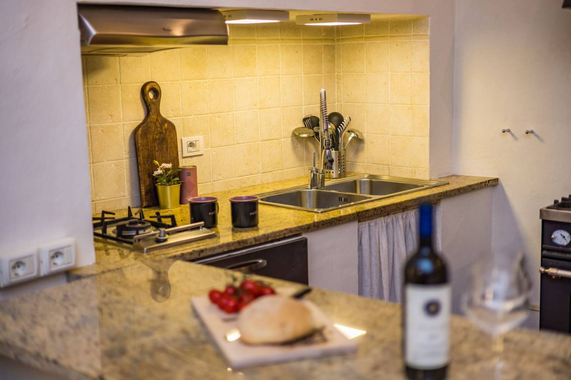 Wohnküche: gut ausgestattete Küche, Esstisch, Spülmaschine, Kühlschrank, Tiefkühler, Mikrowelle, Herd, Ofen, Toaster, Italienische Kaffeemaschine, Amerikanische Kaffeemaschine, WiFi Internet.