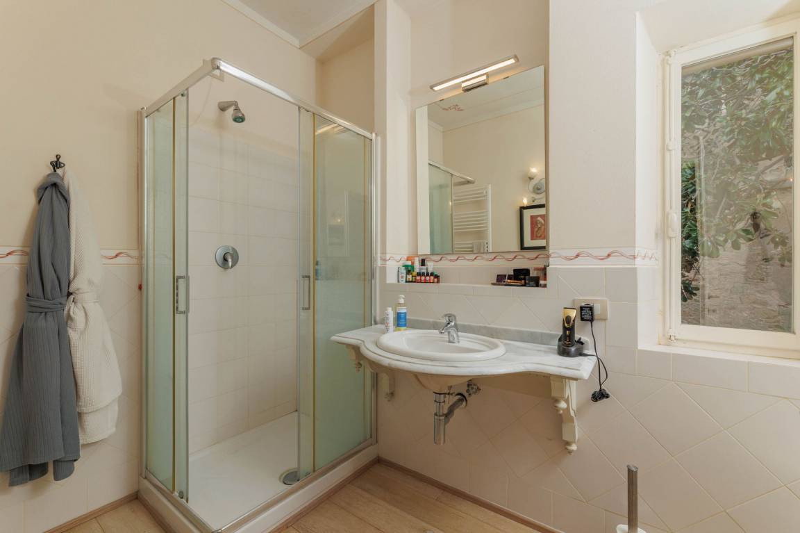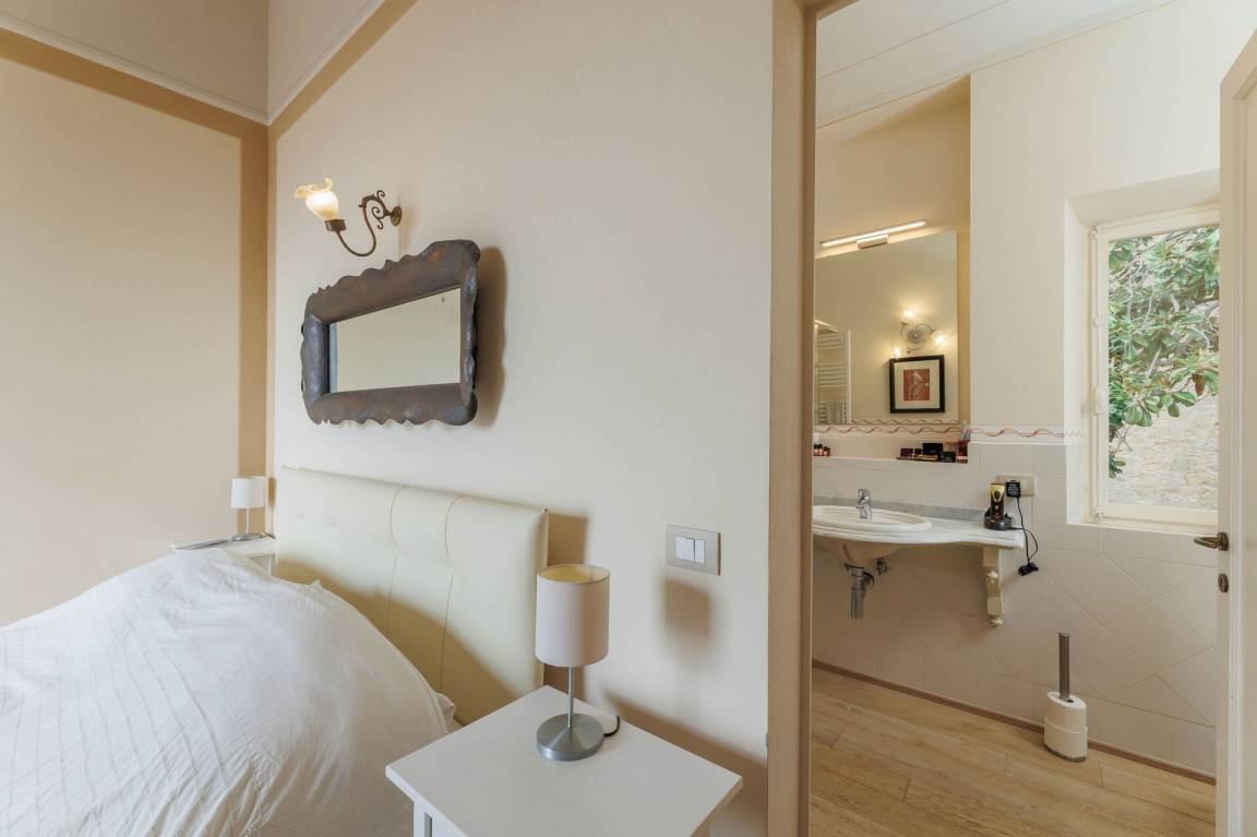 Schlafzimmer mit Bad: großes Doppelbett, WiFi Internet, Klimaanlage, Waschbecken, WC, Bidet, Dusche, Fön, Ausgang auf die Terrasse.