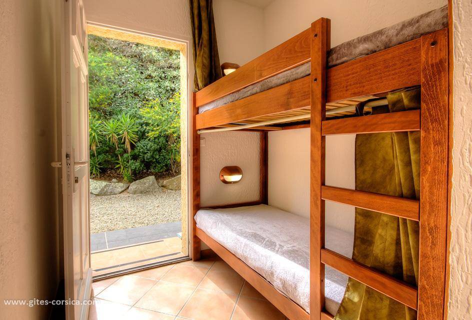- Wohnzimmer/Küche mit Schlafecke mit 2 Etagenbetten (90x190 cm) (das obere Bett ist nicht für Kinder unter 6 Jahren geeignet) und 1 Sitzbank mit 1 Ausziehbett (80x190 cm)