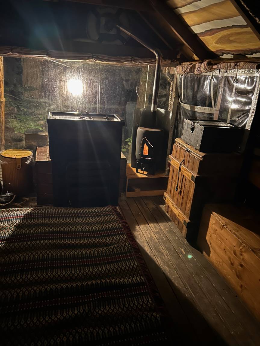 Mit Unterstützung unseres Künstlerfreundes "PONKK" (was soviel wie lebendiger Funke bedeutet und indianisch ist) gibt es nun sowohl im Außen- als auch im Innenbereich die M;glichkeit auf einen Ofen (mit Feuer betrieben) zu kochen. Die kleine Bordkueche kann dann zusaetzlich genutzt werden, wenn man auf Grund des Wetters die Freiluftkueche lieber meidet... An Bord gibt es nun auch fuer kalte Stunden einen kleinen Holzkaminofen, der nicht nur fuer gemuetliche Wärme sorgt, man kann darauf ebenfalls kochen.