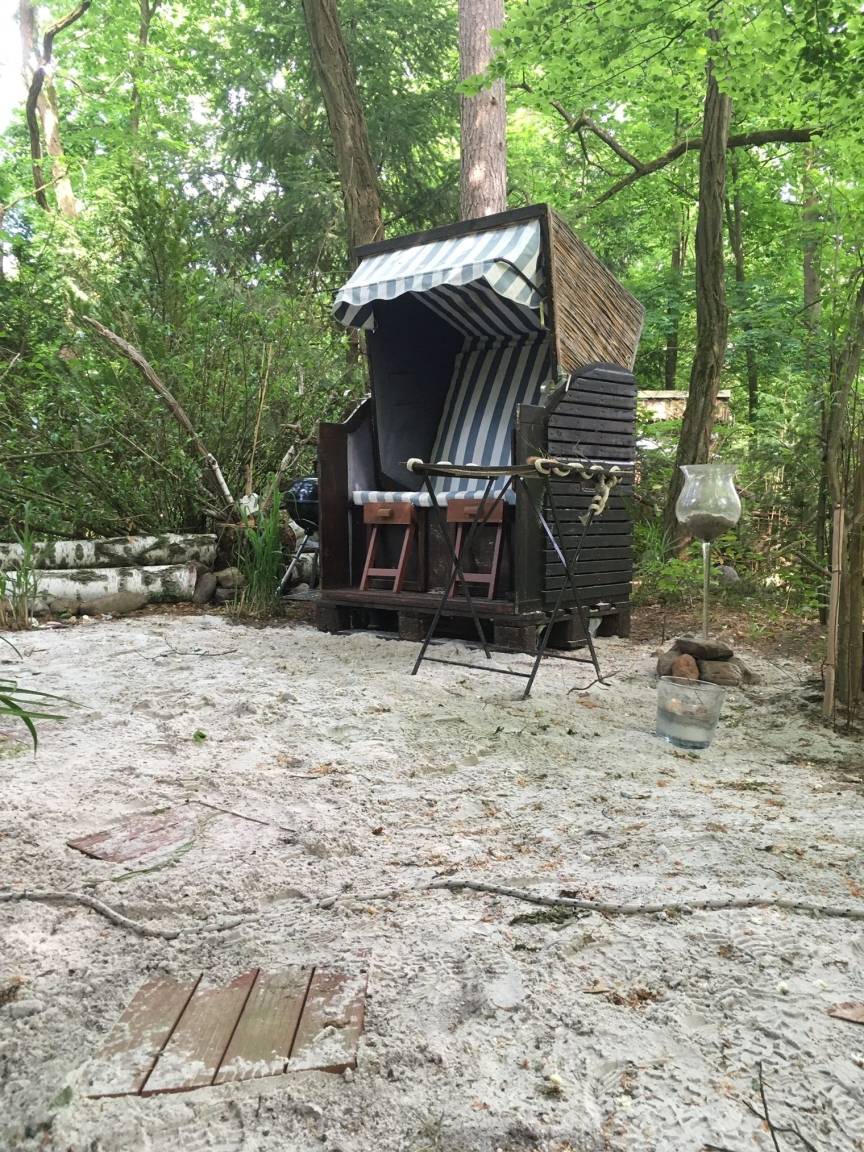 So haben wir Euch z.B. gewaschenen Sand ausgestreut, um ein Gefuehl zu vermitteln "gerade nach langer Fahrt am Ziel angekommen zu sein" ... ja, und dann fehlte dazu ein Strandkorb (wegen gestrandet u.s.w. - ok ;) und nun steht auch dieser an Eurem privaten Ministrand bereit.