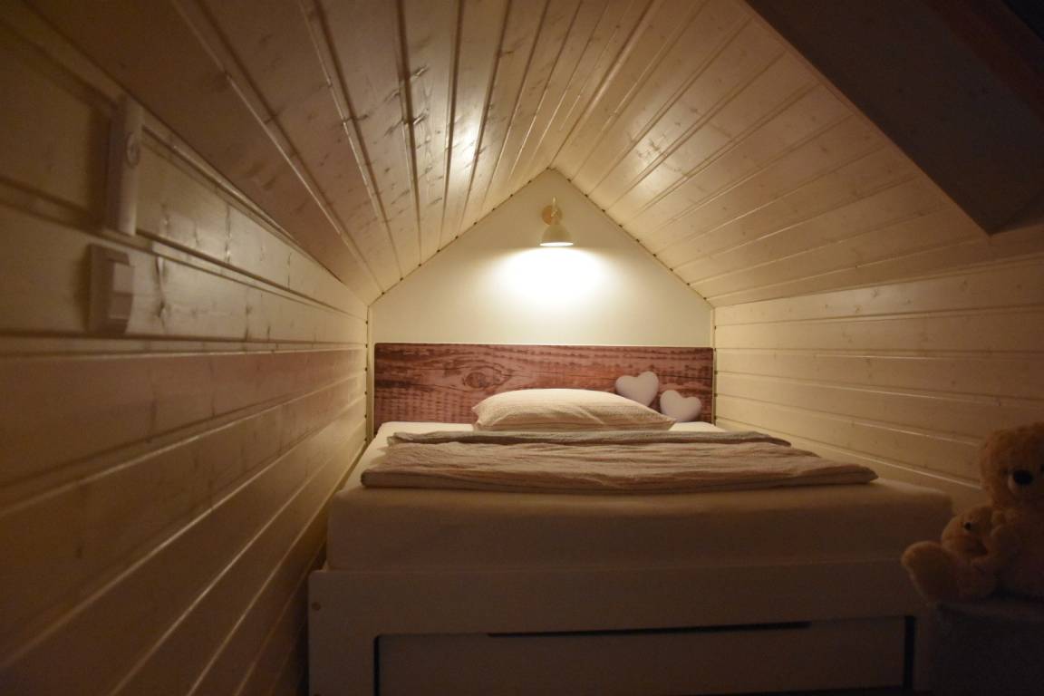 Diese Ferienwohnung mit ca. 65 m² Wohnfläche besticht durch ihr Design und dem tollen Ausblick in den Garten. Im Erdgeschoss befindet sich das Wohnzimmer mit offener Küche sowie ein hochwertig eingerichtetes Bad mit ebenerdiger Dusche. Im Obergeschoss ist ein offener Schlafbereich sowie ein extra Schlafzimmer für insgesamt 4 Personen zur Übernachtung eingerichtet. Eine weitere Aufbettung ist möglich.
