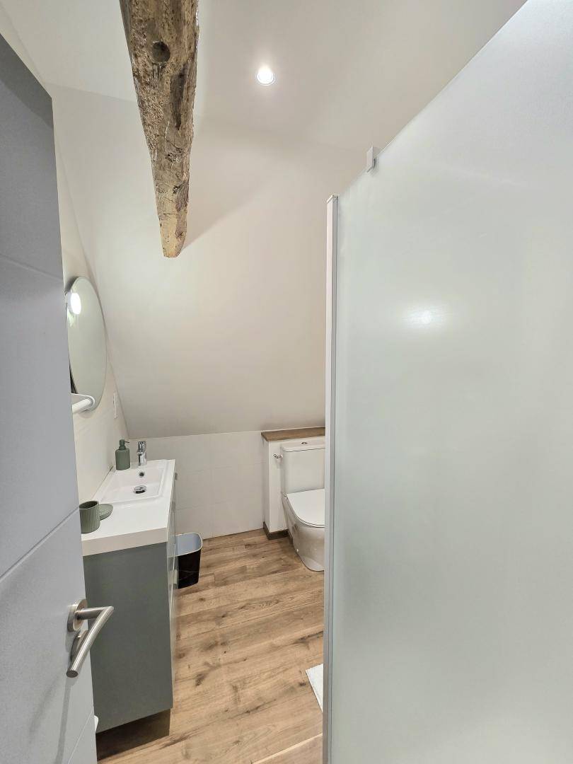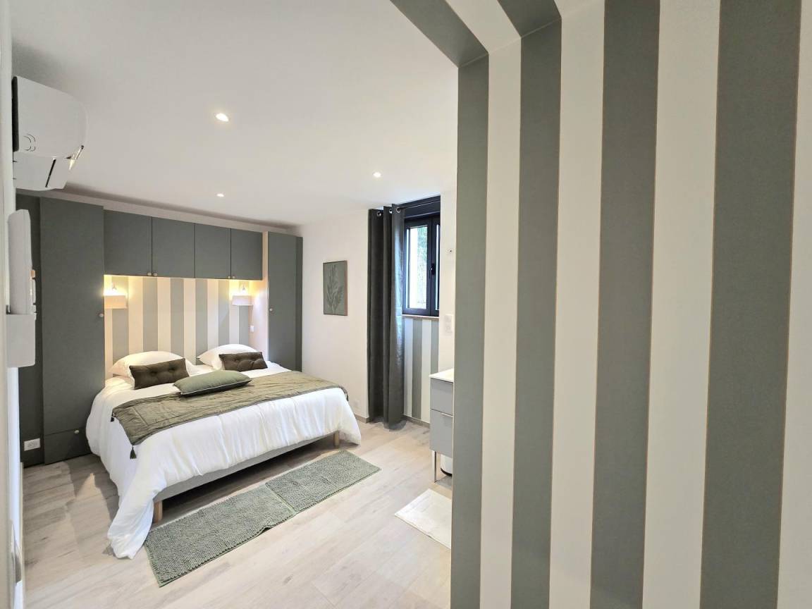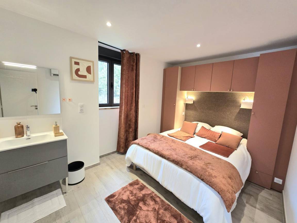 Großes Haus von mehr als 350 m², bestehend aus 2 miteinander kommunizierenden Häusern. Im Erdgeschoss gibt es ein großes Wohnzimmer mit Wohnzimmer, Fernseher und einer voll ausgestatteten Küche sowie eine Waschküche mit Waschmaschine und Trockner. Eine Toilette. Zwei Suiten mit jeweils einem 160x200-Bett und eigenem Bad mit italienischer Dusche, Waschtisch, Haartrockner und Handtuchtrockner.