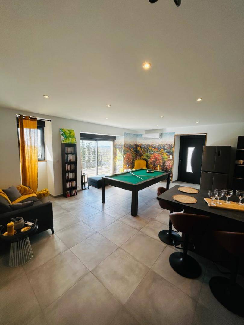 „Félicitations aux propriétaires, leur accueil chaleureux et la qualité de tous les éléments de cette grande maison (literie, linge, mobilier, vaisselle, jeux pour petits et grands, piscine...) nous ont permis de passer un excellent séjour en famille (13 adultes et un enfant de 3 ans). Belle pièce à vivre, superbe terrasse, beau paysage, tout était parfait, jusqu'à la visite guidée de l'exploitation agricole des propriétaires.“