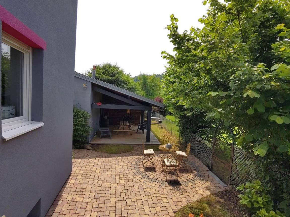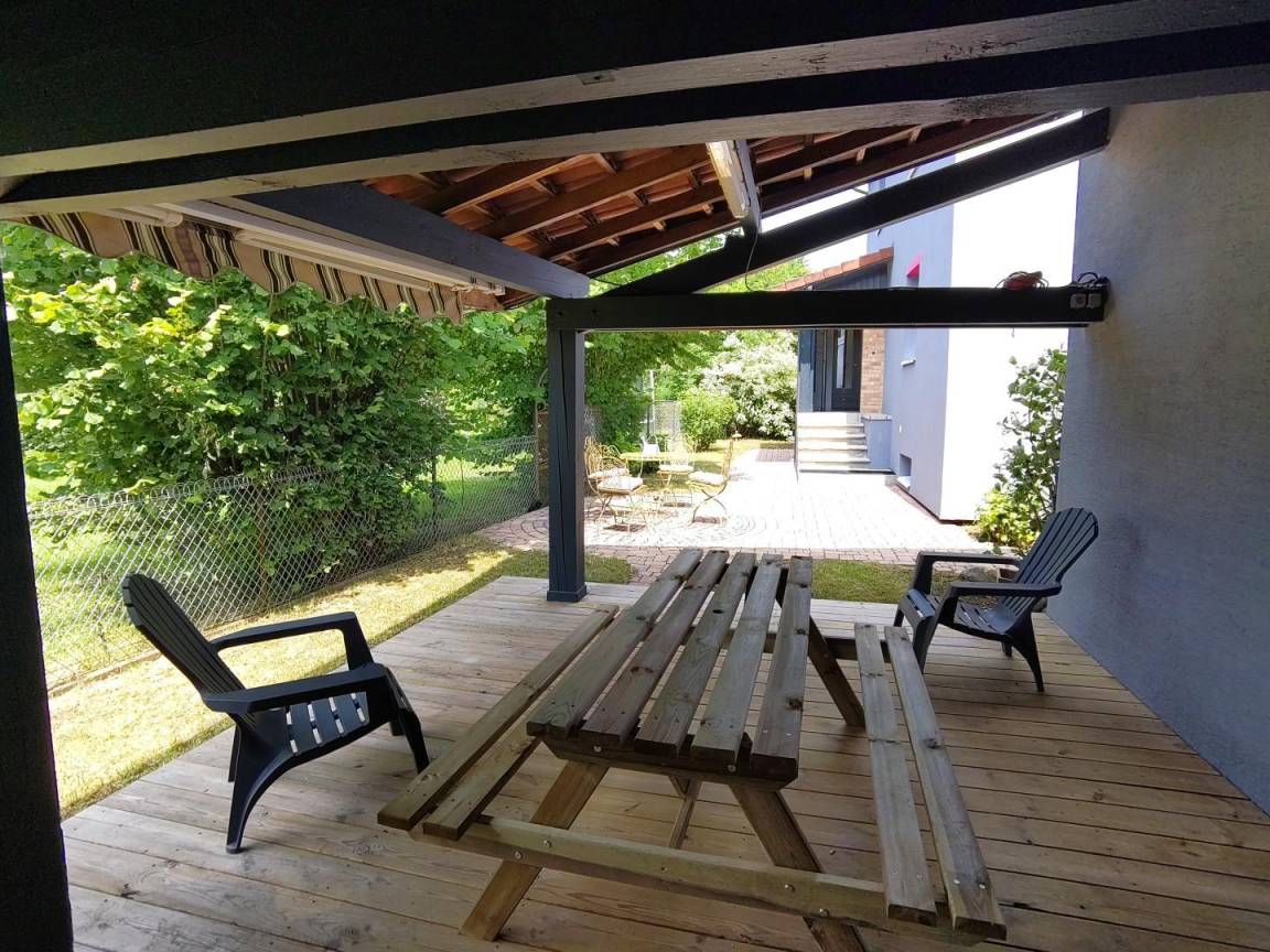 „Propriétaires très sympathiques. Quartier agréable et calme. La maison et cuisine entièrement équipées. Par temps chaud (ou pluie) il est agréable de se détendre sous la verrière spacieuse.“