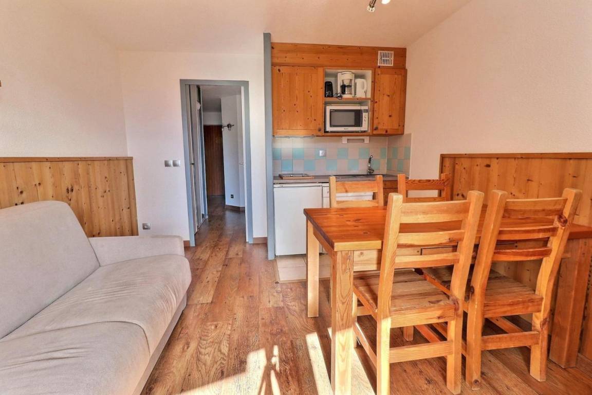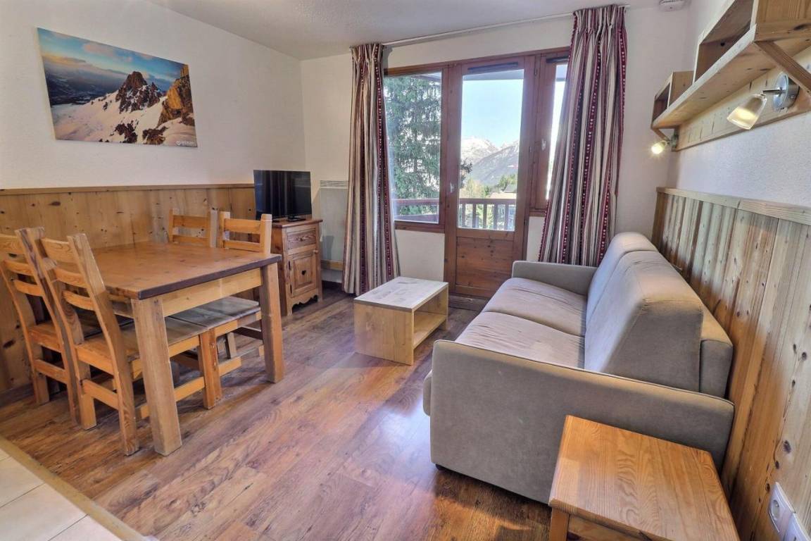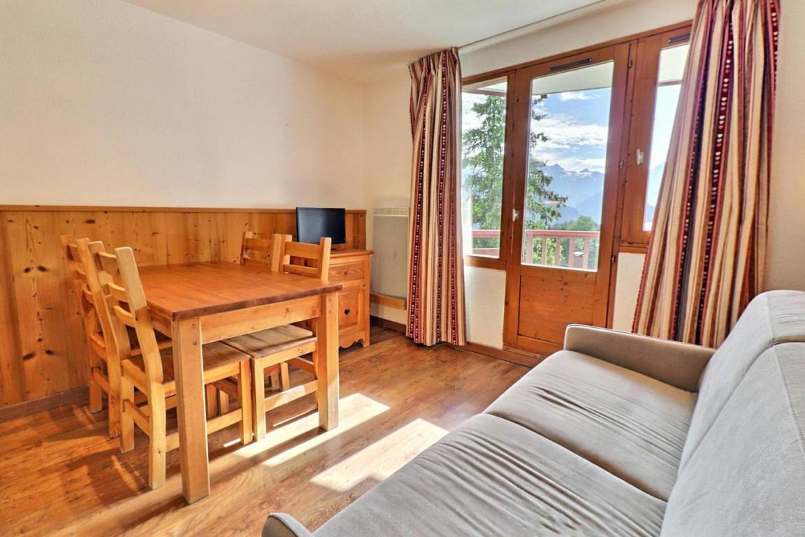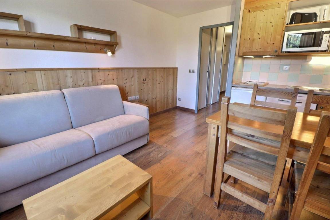 Die Residenz Grand Bois befindet sich in idealer Lage im freundlichen und charmanten Ferienort La Tania im Herzen der 3 Täler. Die Residenz liegt in der Nähe des Zentrums des Ferienorts, wo Sie Geschäfte, das Kino, die Bäckerei, einen Minimarkt, Bars und Restaurants finden. Die Residenz besteht aus 9 Etagen mit Aufzug. Fläche von ungefähr 27 m². 8te Etage. Orientierung : Ost. Wohnzimmer mit Klappschlafcouch (140x190). Schlafzimmer mit 2 Einzelbetten (80x190). Kochnische mit Kaffeemaschine (filtre), kleiner Backofen mit Mikrowellenfunktion, Dunstabzugshaube, Geschirrspülmaschine, Mikrowellenherd, 4 Glaskeramikkochfelder, Kühlschrank. Badezimmer mit Badewanne. separates WC. Balkon.