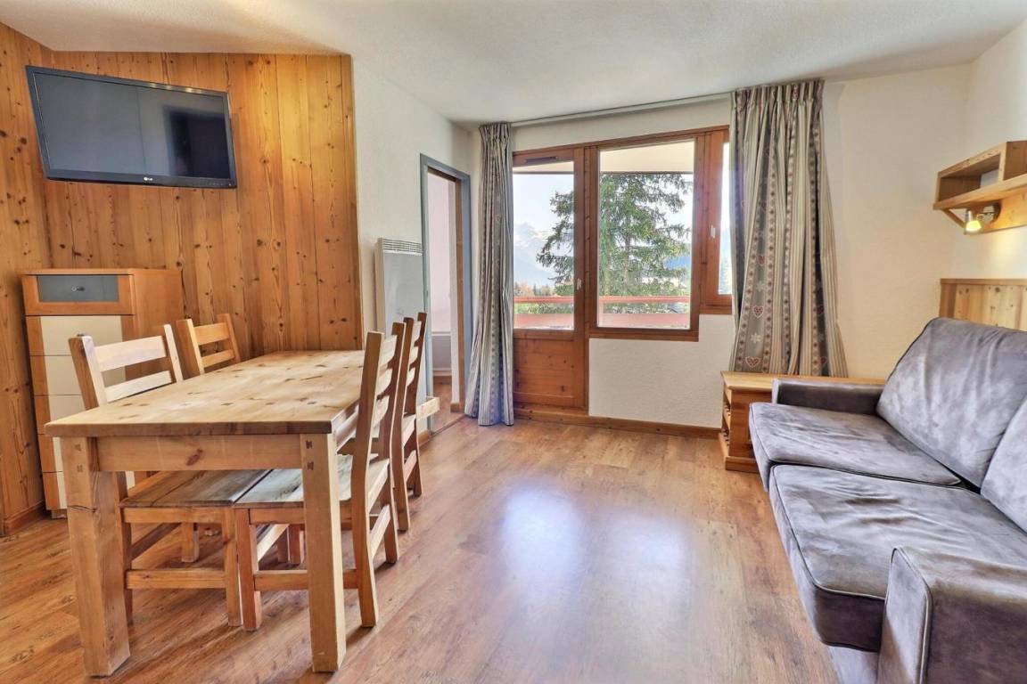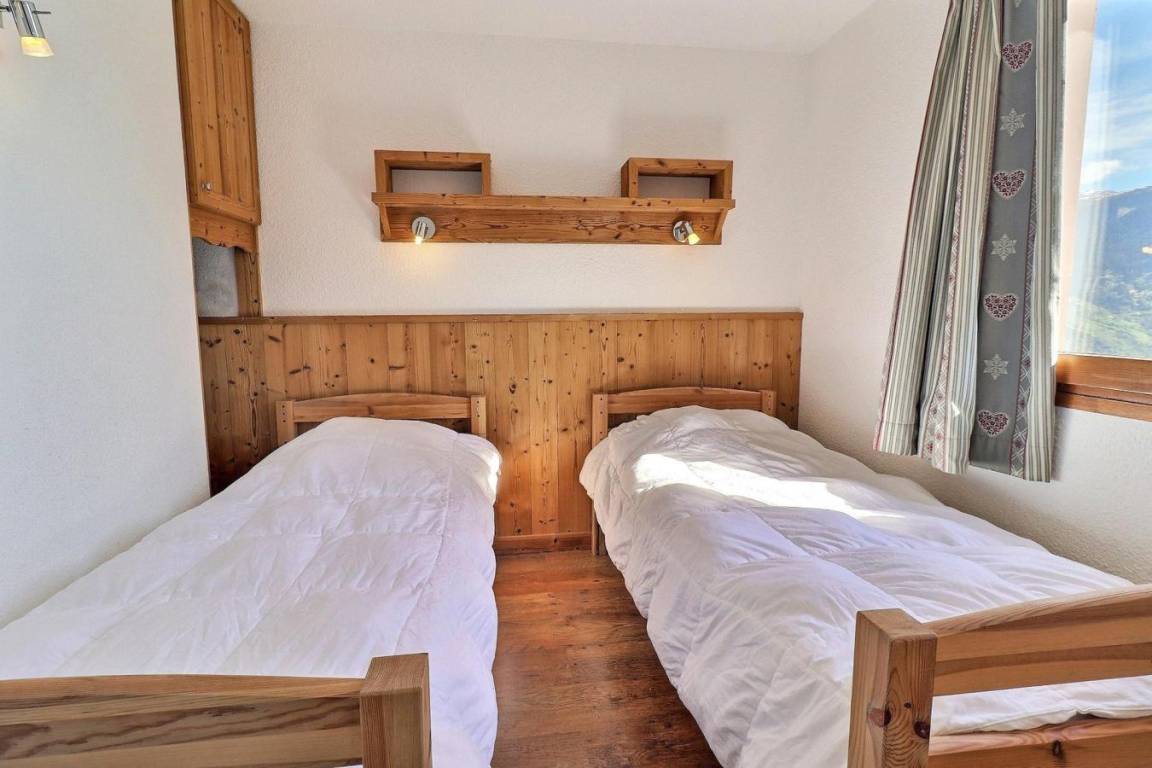 Die Residenz Grand Bois befindet sich in idealer Lage im freundlichen und charmanten Ferienort La Tania im Herzen der 3 Täler. Die Residenz liegt in der Nähe des Zentrums des Ferienorts, wo Sie Geschäfte, das Kino, die Bäckerei, einen Minimarkt, Bars und Restaurants finden. Die Residenz besteht aus 9 Etagen mit Aufzug. Fläche von ungefähr 31 m². 7te Etage. Orientierung : Ost. Wohnzimmer mit Klappschlafcouch (140x190). Schlafzimmer mit 2 Einzelbetten (80x190). Kochnische mit Kaffeemaschine (filtre), kleiner Backofen mit Mikrowellenfunktion, Dunstabzugshaube, Geschirrspülmaschine, 2 Glaskeramikkochfelder, Kühlschrank. Badezimmer mit Badewanne, WC. Balkon.