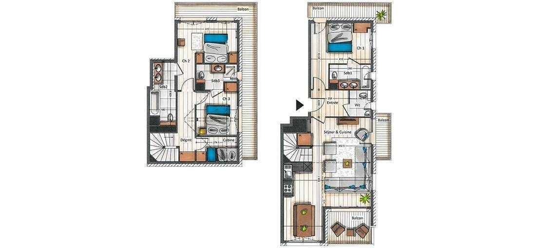 Fläche von ungefähr 110 m². 3te Etage. Orientierung : West. Blick berg. Wohnzimmer. 3 Schlafzimmer mit Doppelbett. offener Schlafbereich mit 2 Stockbetten. Küche mit Wasserkocher, Kaffeemaschine (nespresso), Backofen, Toaster, Dunstabzugshaube, Geschirrspülmaschine, , Kühlschrank. Waschräume mit Haartrockner, Handtuchtrockner, WC. 2 Badezimmer mit Haartrockner, Handtuchtrockner, WC. separates WC. Balkon. Die oberen Betten sind nicht für Kinder unter 6 Jahren geeignet.
