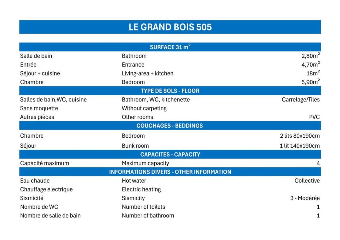 Es liegt 50 Meter von den Skiliften und 150 Meter vom Zentrum und den Geschäften entfernt. Fläche von ungefähr 25 m². 3te Etage. Orientierung : West. Wohnzimmer mit Klappschlafcouch (140x190). Schlafzimmer mit 2 Einzelbetten (80x190). Kochnische mit Kaffeemaschine (à filtre), Mikrowellengrill, Geschirrspülmaschine, 4 Glaskeramikkochfelder, Kühlschrank. Badezimmer mit Dusche, WC. Balkon.
