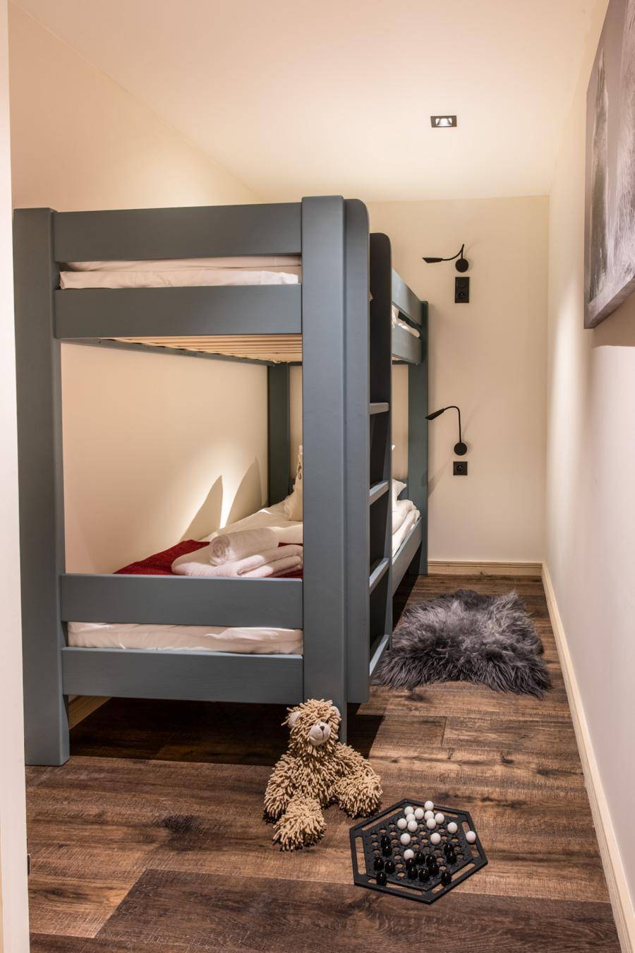 Fläche von ungefähr 132 m². 2te Etage. Orientierung : Nord. Blick berg. Wohnzimmer. 2 Schlafzimmer mit Balkon, Doppelbett, , Haartrockner, Handtuchtrockner, WC. Schlafzimmer mit Balkon, Doppelbett. 2 offene Schlafbereiche mit 2 Stockbetten. Küche mit Wasserkocher, Kaffeemaschine (nes), Backofen, Toaster, Dunstabzugshaube, Waschmaschine, Geschirrspülmaschine, 2 Herdplatten, , Kühlschrank. Badezimmer mit Haartrockner, Handtuchtrockner, WC (séparé). separates WC. Balkon. Die oberen Betten sind nicht für Kinder unter 6 Jahren geeignet.