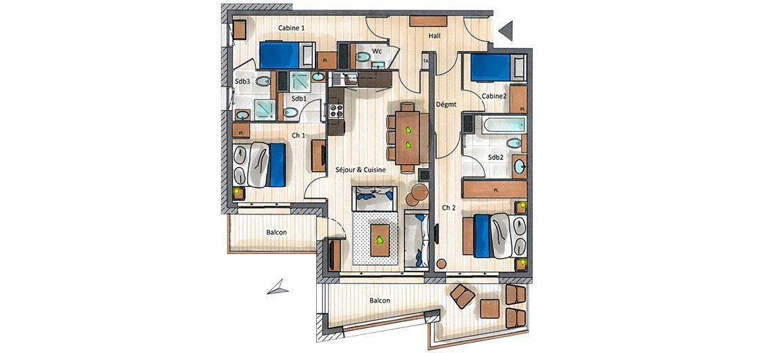 Fläche von ungefähr 91 m². 1te Etage. Orientierung : Nord, West. Blick berg. Wohnzimmer. Schlafzimmer mit Doppelbett, fenstertür zum Balkon, , Haartrockner, Handtuchtrockner, WC. Schlafzimmer mit Doppelbett, Badezimmer, Haartrockner, Handtuchtrockner, WC. offener Schlafbereich mit 2 Stockbetten, , Haartrockner, Handtuchtrockner, WC. offener Schlafbereich mit 2 Stockbetten. Küche mit Wasserkocher, Kaffeemaschine (Nespresso), Backofen, Toaster, Dunstabzugshaube, Waschmaschine, Geschirrspülmaschine, 2 Herdplatten, , Kühlschrank. separates WC. Balkon. Die oberen Betten sind nicht für Kinder unter 6 Jahren geeignet.