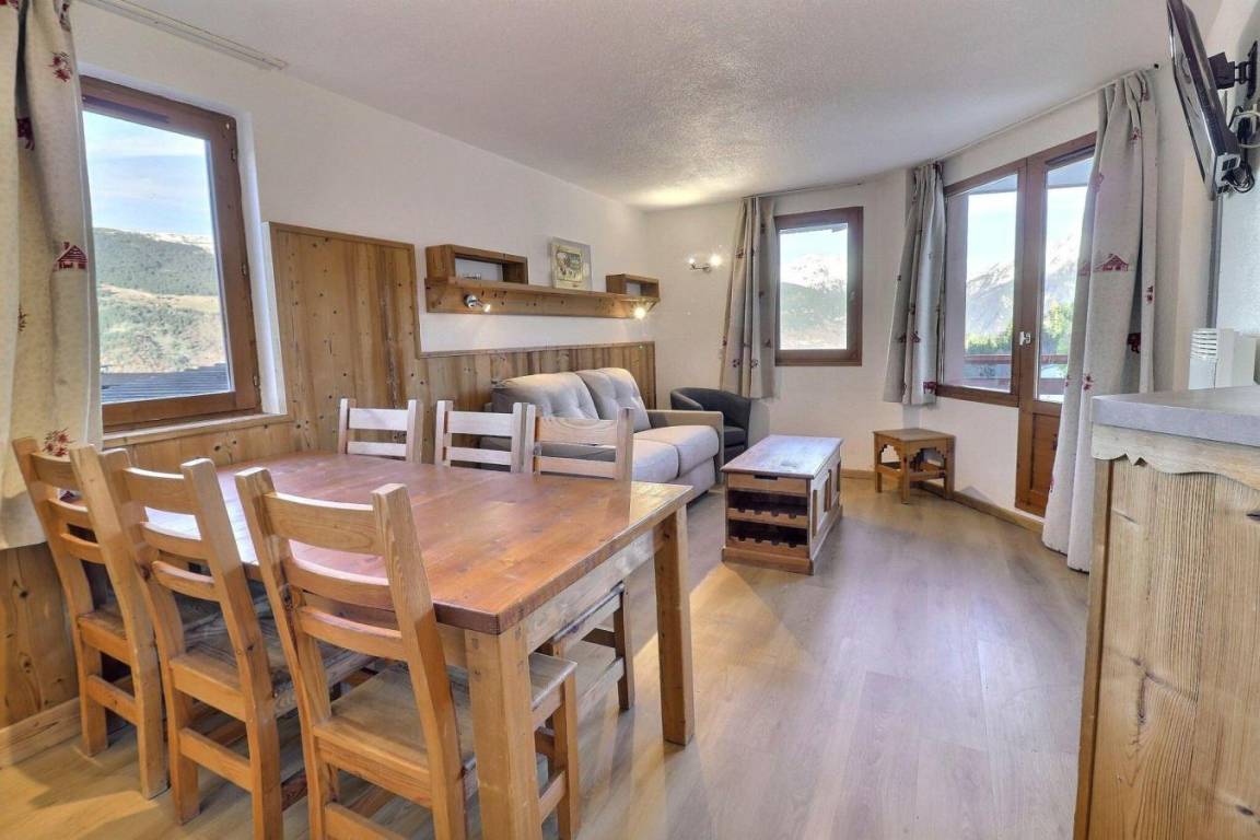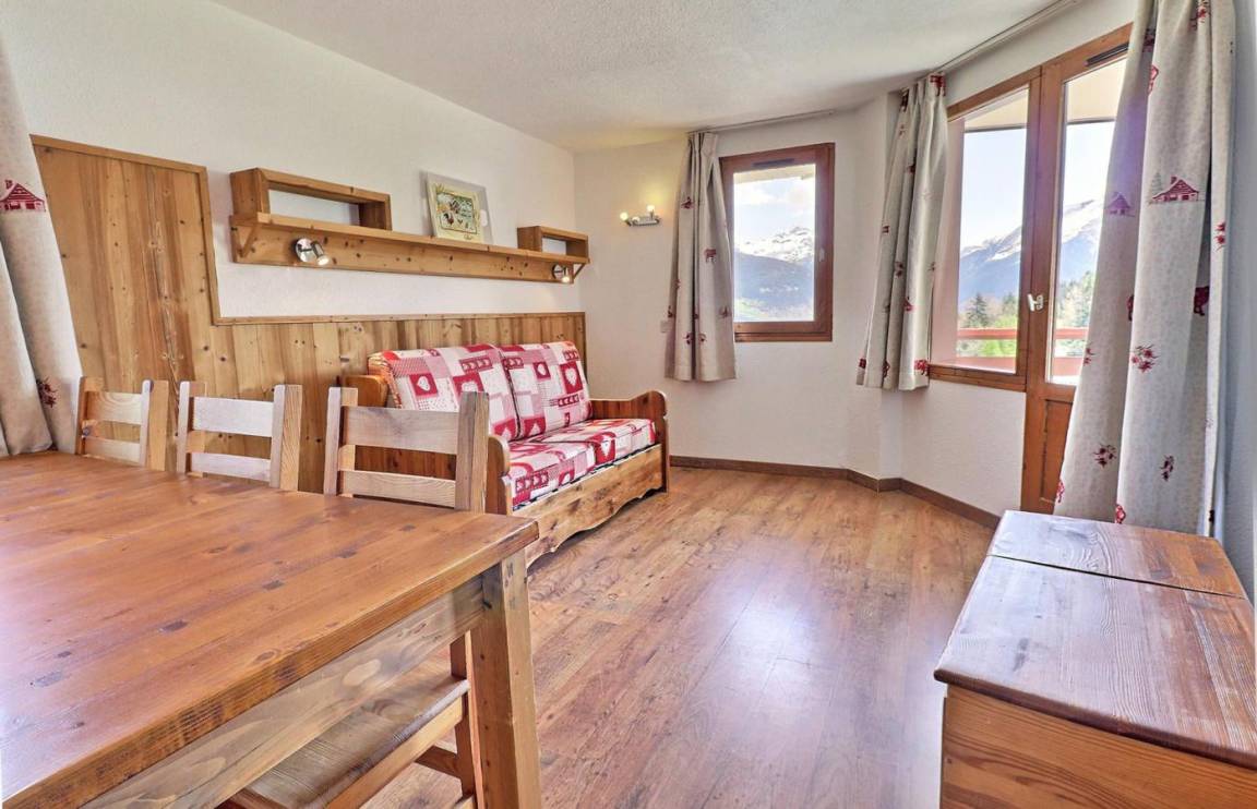 Die Residenz Grand Bois befindet sich in idealer Lage im freundlichen und charmanten Ferienort La Tania im Herzen der 3 Täler. Die Residenz liegt in der Nähe des Zentrums des Ferienorts, wo Sie Geschäfte, das Kino, die Bäckerei, einen Minimarkt, Bars und Restaurants finden. Die Residenz besteht aus 9 Etagen mit Aufzug. Fläche von ungefähr 41 m². 5te Etage. Orientierung : Ost. Wohnzimmer mit Klappschlafcouch (140x190). Schlafzimmer mit 2 Einzelbetten (80x190). offener Schlafbereich mit 2 Stockbetten (80x190). Kochnische mit Kaffeemaschine, kleiner Backofen mit Mikrowellenfunktion, Dunstabzugshaube, Geschirrspülmaschine, Glaskeramikkochfelder, Kühlschrank. Badezimmer mit Badewanne. Waschräume mit Dusche, WC. separates WC. Balkon. Die oberen Betten sind nicht für Kinder unter 6 Jahren geeignet.