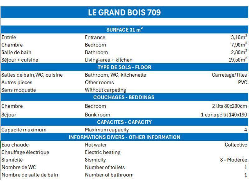 Es liegt 50 Meter von den Skiliften und 150 Meter vom Zentrum und den Geschäften entfernt. Fläche von ungefähr 31 m². 7te Etage. Orientierung : West. Wohnzimmer mit Klappschlafcouch (140x190). Schlafzimmer mit 2 Einzelbetten (80x200). Kochnische mit Kaffeemaschine (filtre), kleiner Backofen mit Mikrowellenfunktion, Geschirrspülmaschine, 4 Glaskeramikkochfelder, Kühlschrank. Badezimmer mit Badewanne. separates WC. Balkon.