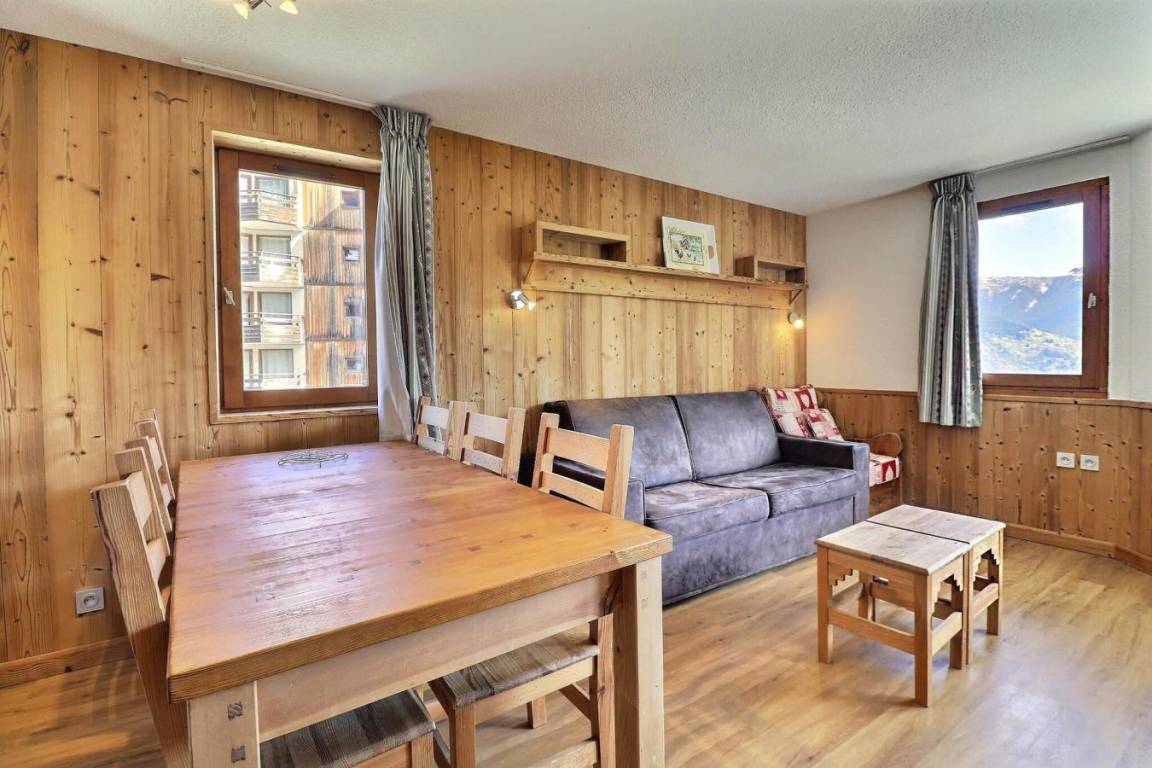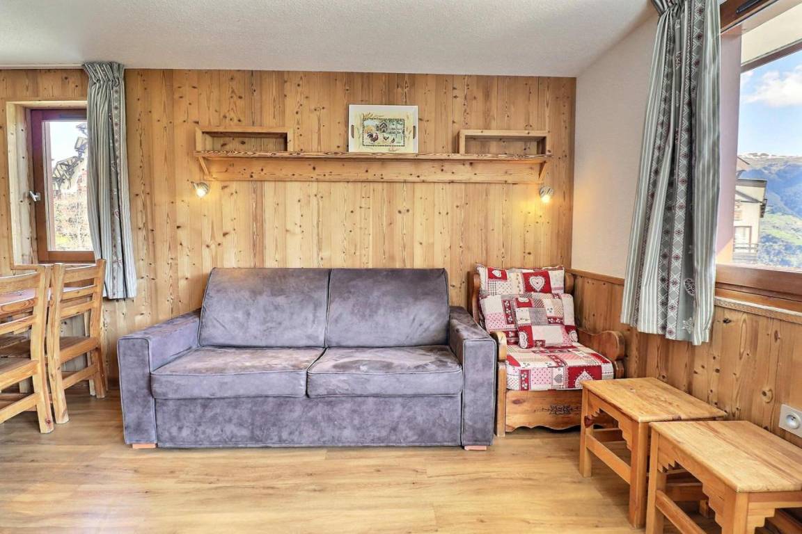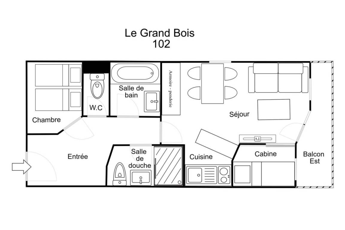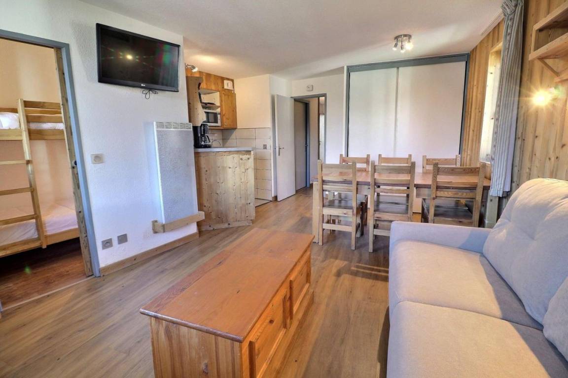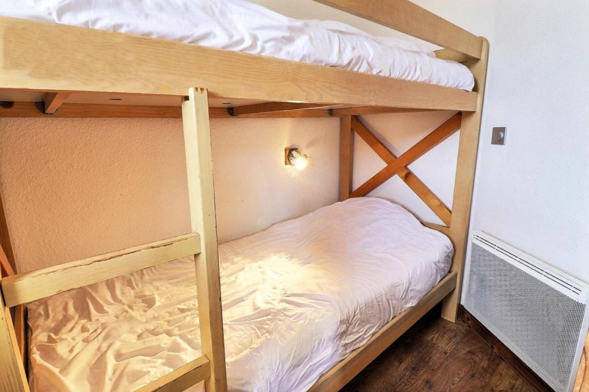 Die Residenz Grand Bois befindet sich in idealer Lage im freundlichen und charmanten Ferienort La Tania im Herzen der 3 Täler. Die Residenz liegt in der Nähe des Zentrums des Ferienorts, wo Sie Geschäfte, das Kino, die Bäckerei, einen Minimarkt, Bars und Restaurants finden. Die Residenz besteht aus 9 Etagen mit Aufzug. Fläche von ungefähr 41 m². 1te Etage. Orientierung : Ost. Wohnzimmer mit Klappschlafcouch (140x190). Schlafzimmer mit 2 Einzelbetten (80x185). offener Schlafbereich mit 2 Stockbetten (90x190). Kochnische mit Kaffeemaschine, kleiner Backofen mit Mikrowellenfunktion, Dunstabzugshaube, Geschirrspülmaschine, Glaskeramikkochfelder, Kühlschrank. Waschräume mit Dusche, WC. Badezimmer mit Badewanne. separates WC. Balkon. Die oberen Betten sind nicht für Kinder unter 6 Jahren geeignet.