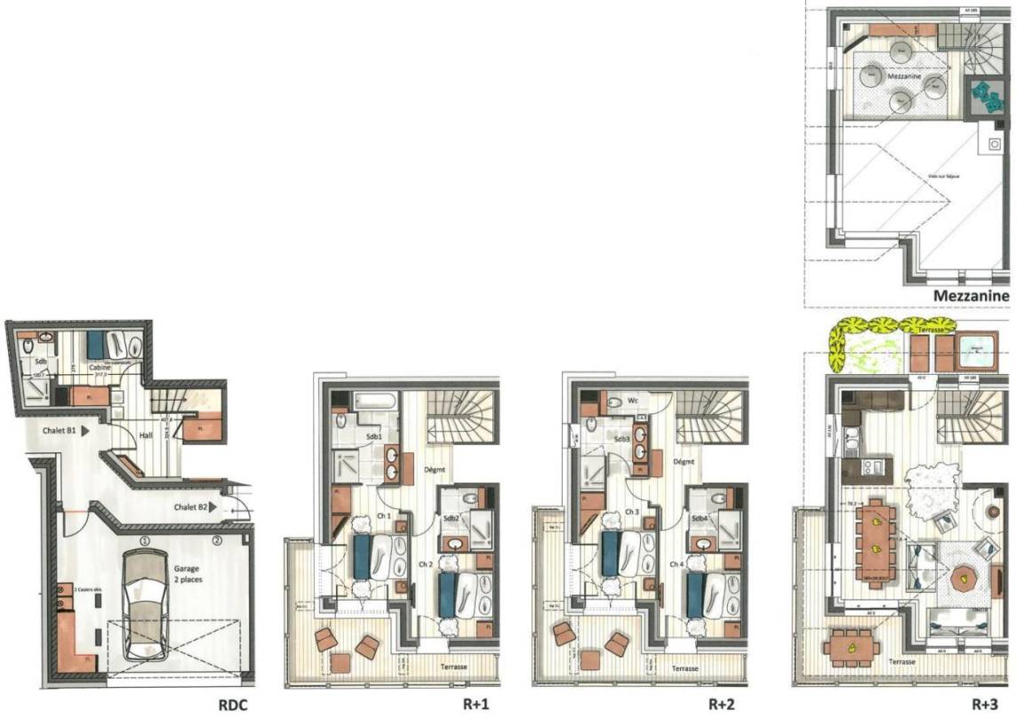 Fläche von ungefähr 167 m². Orientierung : Nord, West. Blick berg ODER Blick tal. Niveau 0 : offener Schlafbereich mit 2 Stockbetten, , Haartrockner, Handtuchtrockner, WC. Aufzug. Niveau 1 : Schlafzimmer mit Doppelbett, fenstertür zum Balkon, , Haartrockner, Handtuchtrockner, WC. Schlafzimmer mit , Dusche, Doppelbett, fenstertür zum Balkon, , Haartrockner, Handtuchtrockner, WC. Balkon mit Gartentisch und -stühle. Niveau 2 : 2 Schlafzimmer mit Doppelbett, fenstertür zum Balkon, , Haartrockner, Handtuchtrockner, WC. Balkon mit Gartentisch und -stühle. Niveau 3 : Wohnzimmer mit Balkon, Sofa, Kamin, TV. offene Küche mit Wasserkocher, Kaffeemaschine (Nespresso), Backofen, Toaster, Dunstabzugshaube, Waschmaschine, Geschirrspülmaschine, Mikrowellenherd, 2 Herdplatten, , Kühlschrank. Balkon mit 8 Stühle, Whirlpool, Tisch. Niveau 4 : Mansardenzwischengeschoss (-1,80 m) mit Sofa, 3 Sessel, TV. Die oberen Betten sind nicht für Kinder unter 6 Jahren geeignet.