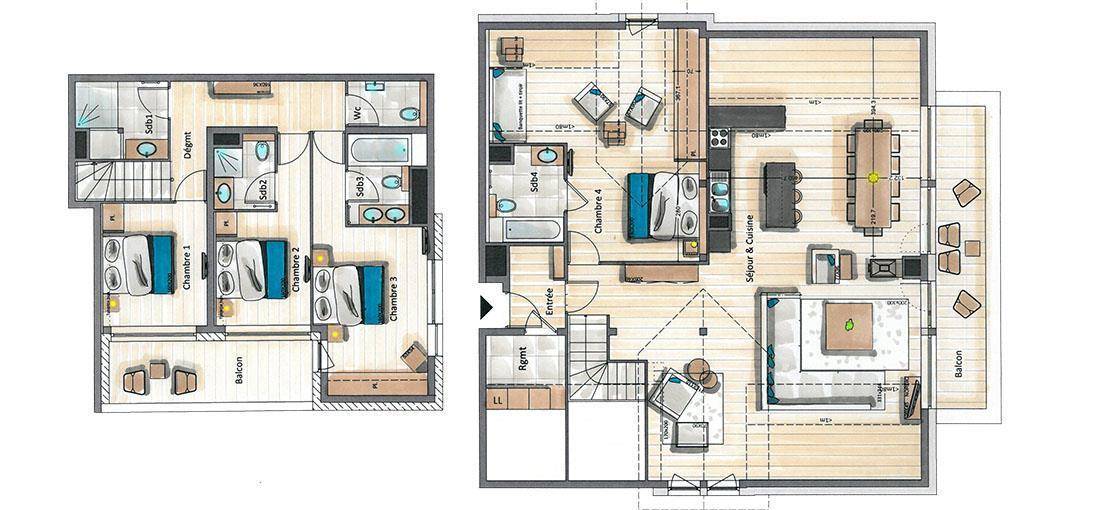 Fläche von ungefähr 170 m². 5te Etage. Orientierung : Nord, West. Blick berg. Niveau 0 : Diele mit Waschmaschine. Wohnzimmer. Schlafzimmer mit Doppelbett, Einzelbett (mansardé), , Haartrockner, Handtuchtrockner, WC. Küche mit Wasserkocher, Kaffeemaschine (n), Backofen, Toaster, Dunstabzugshaube, Geschirrspülmaschine, 2 Herdplatten, , Kühlschrank. Balkon. Niveau -1 : Schlafzimmer mit Doppelbett. Schlafzimmer mit Doppelbett, , Haartrockner, Handtuchtrockner, WC. Schlafzimmer mit Doppelbett, , Haartrockner, Handtuchtrockner, WC. Badezimmer mit Haartrockner, Handtuchtrockner. separates WC. Balkon.