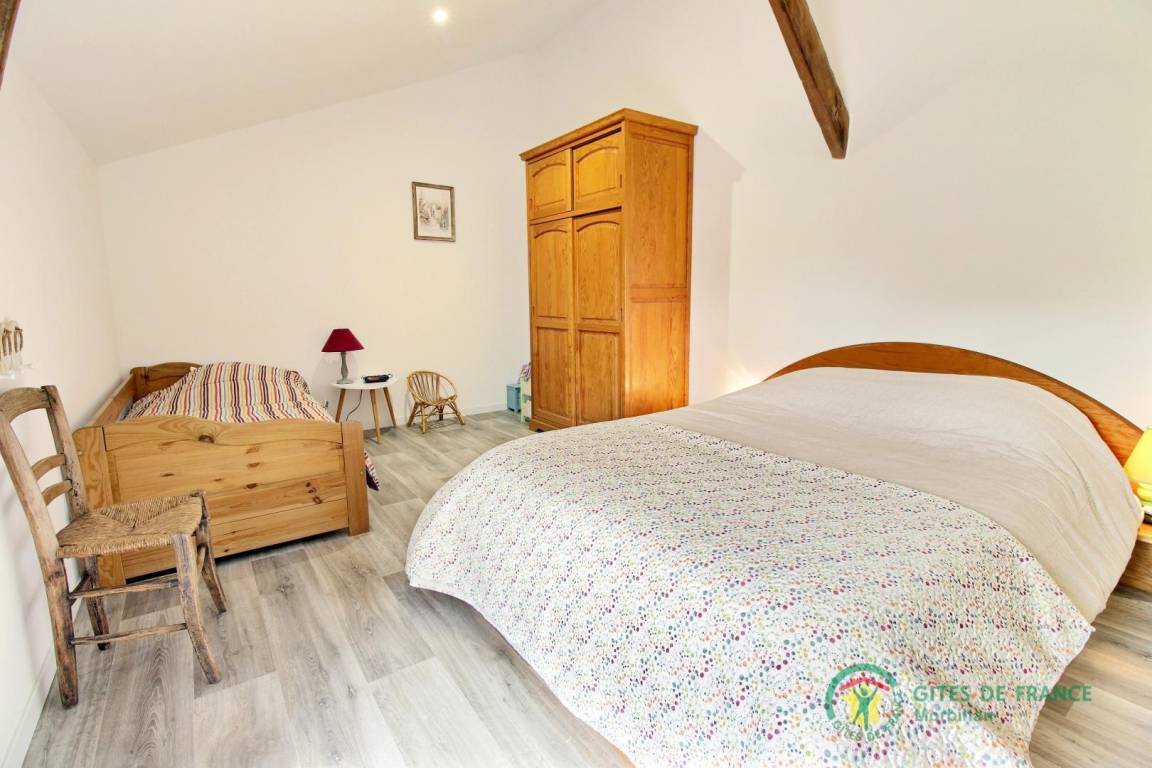 - Schlafzimmer mit einem 140 x 190-Bett + einem 90 x 190-Bett + einem Babybett