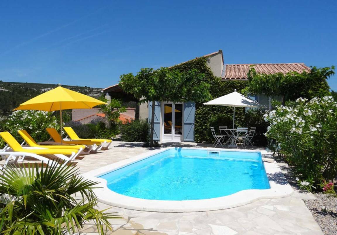 Ferienhaus am Rande des Dorfes Coustouge, im Herzen des Landes, Corbières und Katharer. Umgeben von Hügeln und Weinbergen bietet einen Blick auf die mediterrane Landschaft. Landschaftsbau Felsen kleine Hecken. Beheizter Swimmingpool (4 X 7). Geschäfte 6 km, Strände um 30 Minuten.