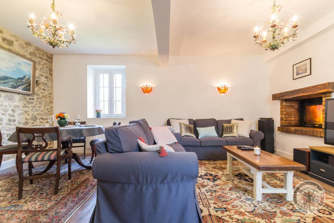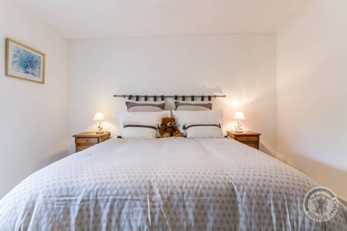 Freistehendes Haus. Wohnzimmer mit Doppelkamin (Satellitenfernsehen, Stereoanlage, Internet mit Glasfaser, DVD auf Anfrage). Küche (Backofen, Geschirrspüler, Kühlschrank mit Gefrierfach, Mikrowelle). Obergeschoss: Schlafzimmer 1 (1 Bett 160x200), Duschraum mit Toilette, Schlafzimmer 2 (2 Betten 90x200, die zusammengestellt werden können). Babyausstattung. Bettwäsche wird gestellt und Betten sind bei Ankunft bezogen. Handtücher werden gestellt. Reinigungsservice gegen Aufpreis. Elektroheizung inklusive. Alle Gebühren inklusive. Gemeinsamer umzäunter Garten. Private Terrasse. Gartenmöbel. Grill. Waschküche (Waschmaschine, Trockner). Parkplatz. Gemeinsamer Landschaftspark.