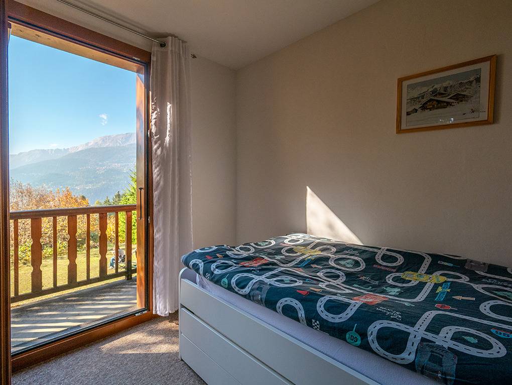 Ort: Crans-Montana. Herrlich ruhige Lage auf 1100 m Höhe unterhalb des Ortszentrums, umgeben von Almwiesen beim Dorf Icogne. Schöner Blick ins Rhônetal und auf die umliegende Bergwelt. Vielfältige Wandermöglichkeiten in der Umgebung. Alaia-Chalet in Lens mit Skate- und Trampolinpark 1 km. Crans mit Supermarkt, Geschäften, Badeseen, Bootsverleih 2,5 km. Gondel ins Höhen-Wandergebiet 4 km. Guter Standort für Tagesausflüge: Kantonshauptstadt Sion mit schöner Altstadt 18 km. Bettmeralp mit Unesco-Weltnaturerbe Aletsch-Gletscher 60 km. Zermatt mit Matterhorn 70 km. Montreux am Genfer See 90 km.