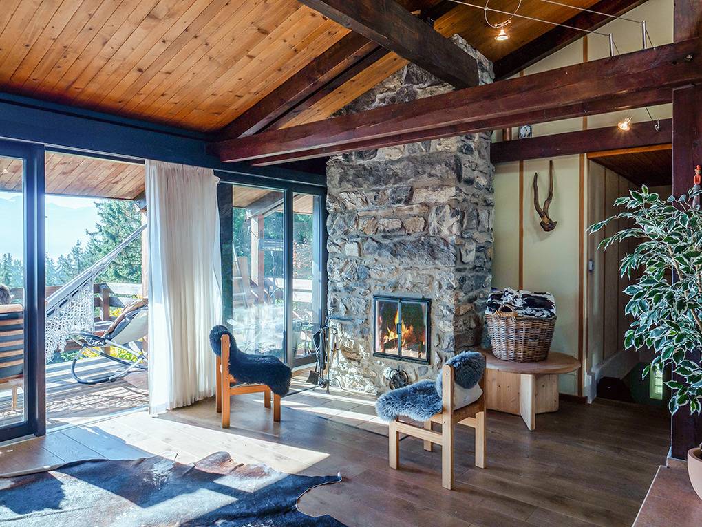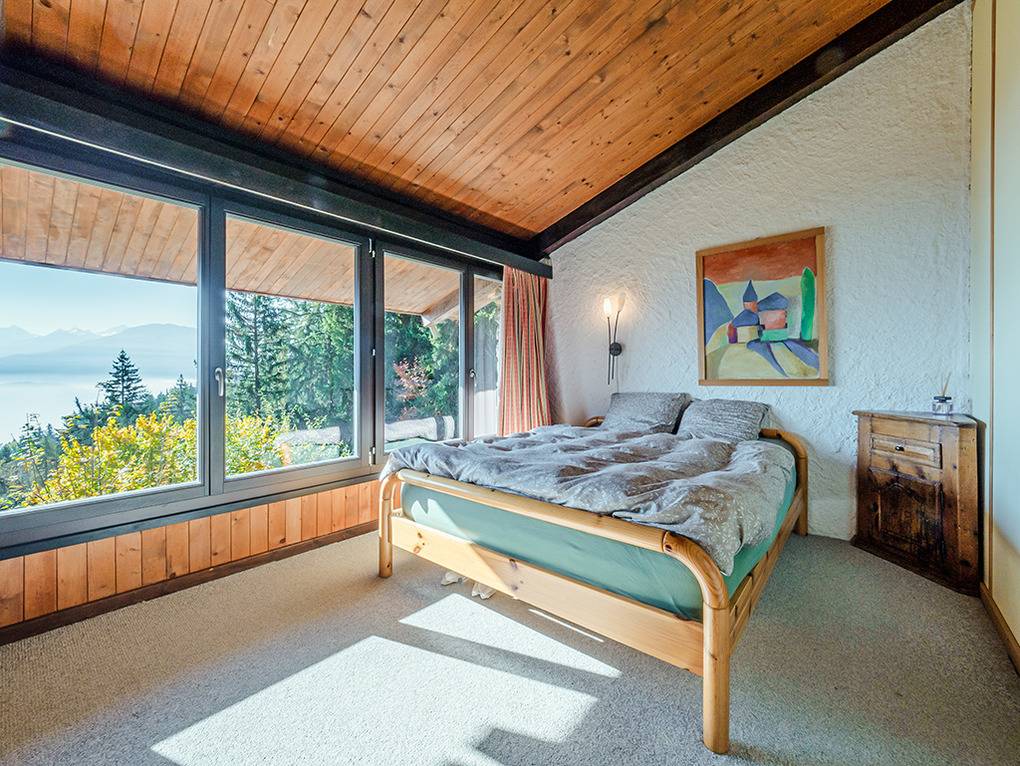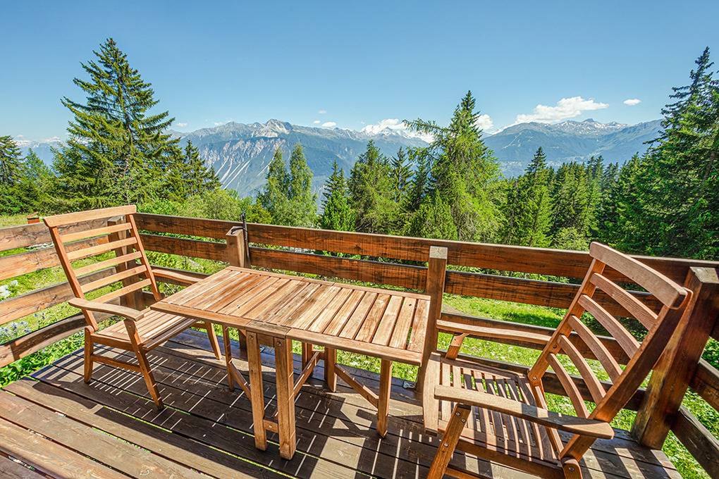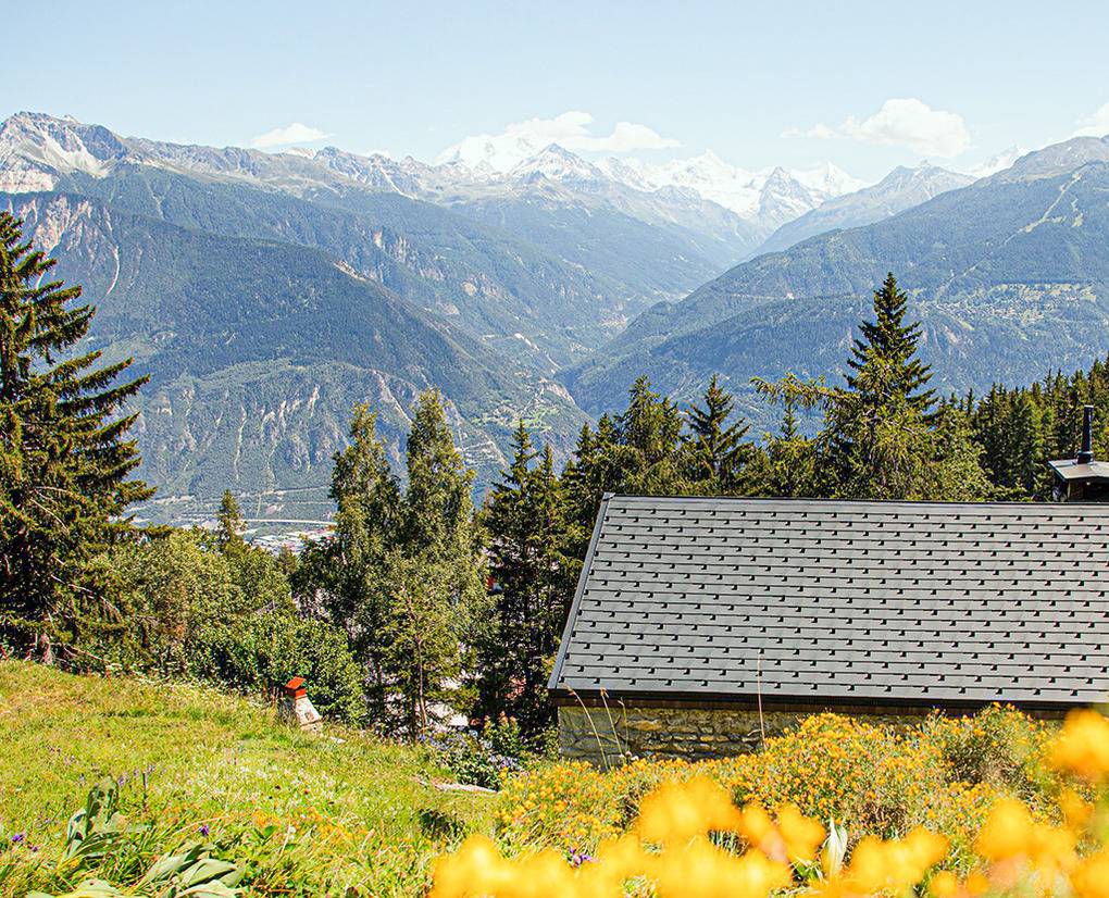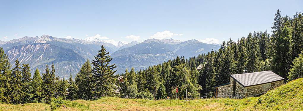 Ort: Crans-Montana. Herrlich ruhige, idyllische Hanglage oberhalb des Ortes, umgeben von Almwiesen. Sehr schöner Blick auf die Berge des Alpenhauptkamms mit seinen Viertausendern. Zufahrt bis auf 80 m, danach Fußweg hangaufwärts zum Haus. Schöne Wanderwege, zum Beispiel entlang der Suonen, verlaufen in unmittelbarer Nähe des Hauses (ca. 100 m). Bus nach Crans, Sierre 200 m. Gondel mit Sommerbetrieb 450 m. Bahnhof Standseilbahn Crans-Montana 1,5 km. Ortsmitte Montana mit vielen Geschäften, Restaurants ca. 2 km. Badesee Moubra 3 km. Guter Standort für Tagesausflüge: Kantonshauptstadt Sion mit schöner Altstadt 25 km. Bettmeralp mit Aletschgletscher 60 km. Zermatt mit Matterhorn 70 km.