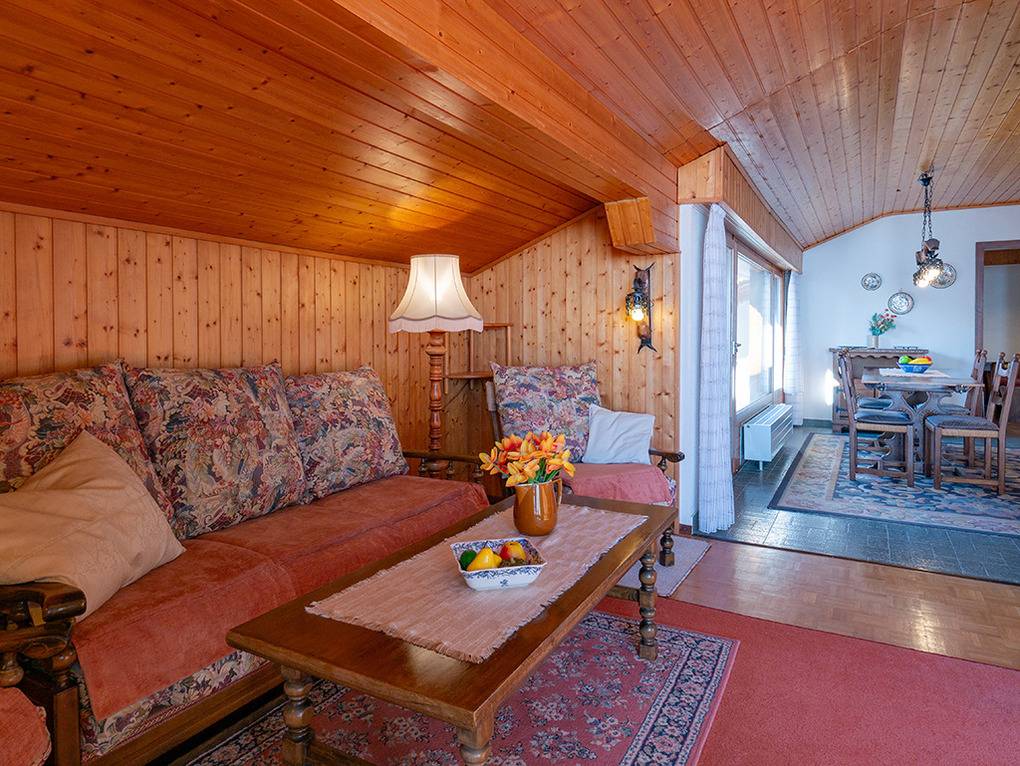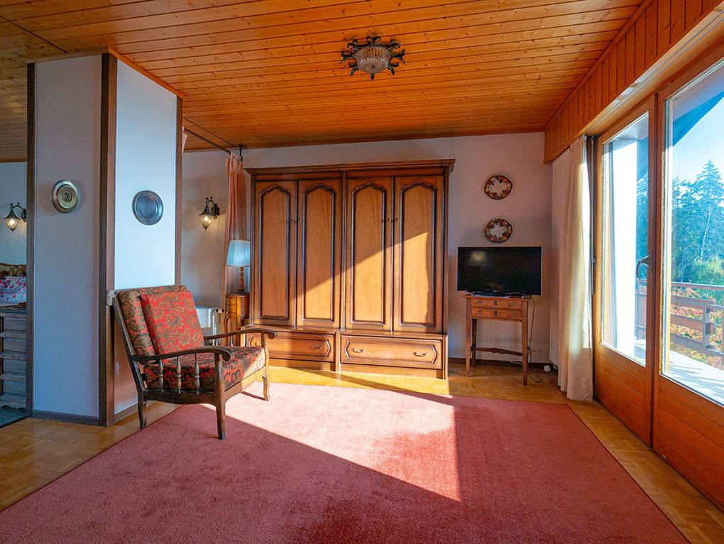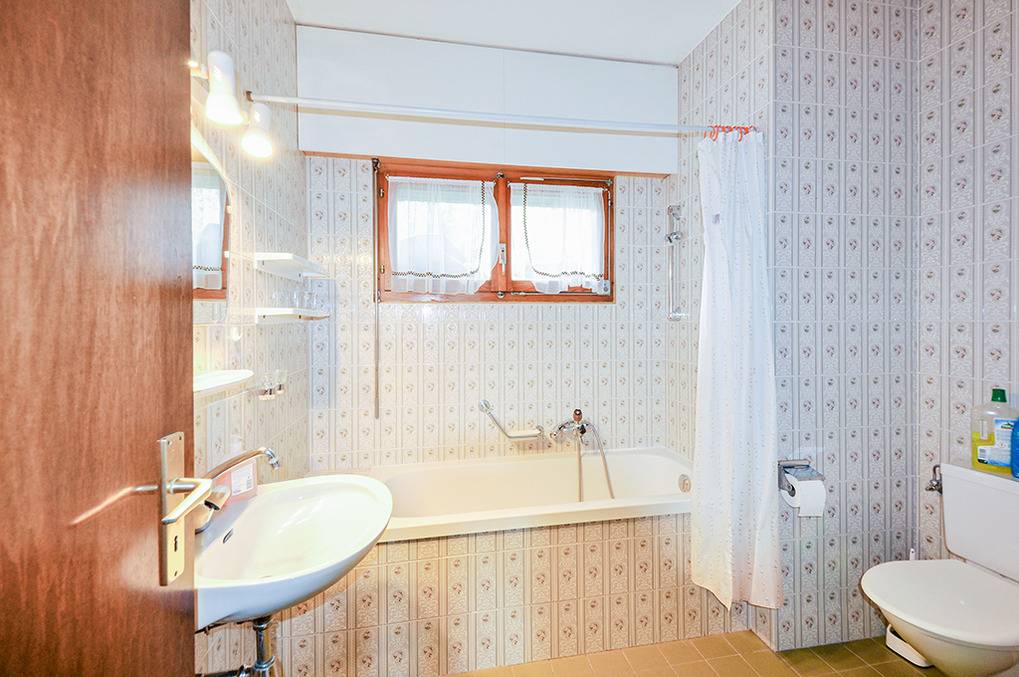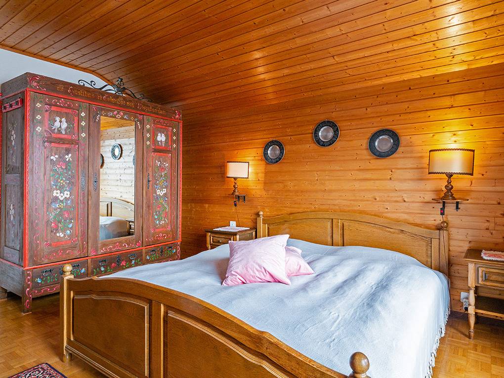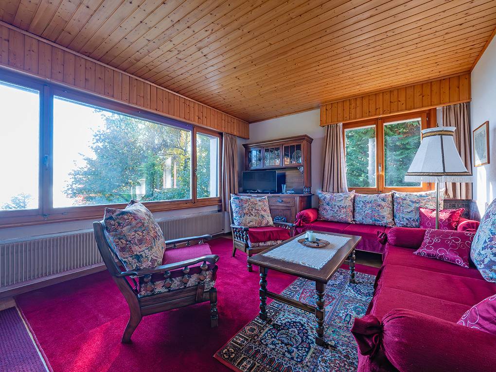 Haus: Großes regionaltypisches Chalet mit Schwimmbad und Sauna. Schönes Wohnhaus mit 2 Ferienwohnungen und der fest bewohnten Wohnung des Vermieters. Bei gemeinsamer Anmietung beider Fewos ergeben sich 6 Zimmer mit 180 qm Wohnfläche, gemeinsames Essen in der oberen Wohnung möglich. Gemütliche Chalet-Atmosphäre durch Holzvertäfelungen in vielen Räumen. Im Haus: großes Schwimmbad (10 x 4,50 Meter, 24°C, kostenfrei nutzbar) mit Ruheliegen vor großen Panoramafenstern, Sauna (Gebühr), Duschen, WC. Internetzugang über W-Lan. Waschmaschine. Zentralheizung. Nichtraucherhaus. Balkon, Terrasse (Sitzmöbel). Tiefgarage mit 4 Pkw-Stellplätzen (max. 1,95 m Höhe), weitere Außenplätze je nach Verfügbarkeit. Hinweise: Betriebszeiten Schwimmbad nur Juli, August. Gemeinschaftsnutzung mit zwei weiteren Fewos im Nachbarchalet. Aufgrund der Bettengrößen ist eine Belegung mit max. 12 Erwachsenen möglich.