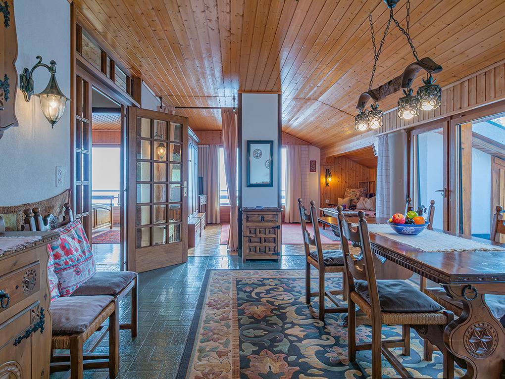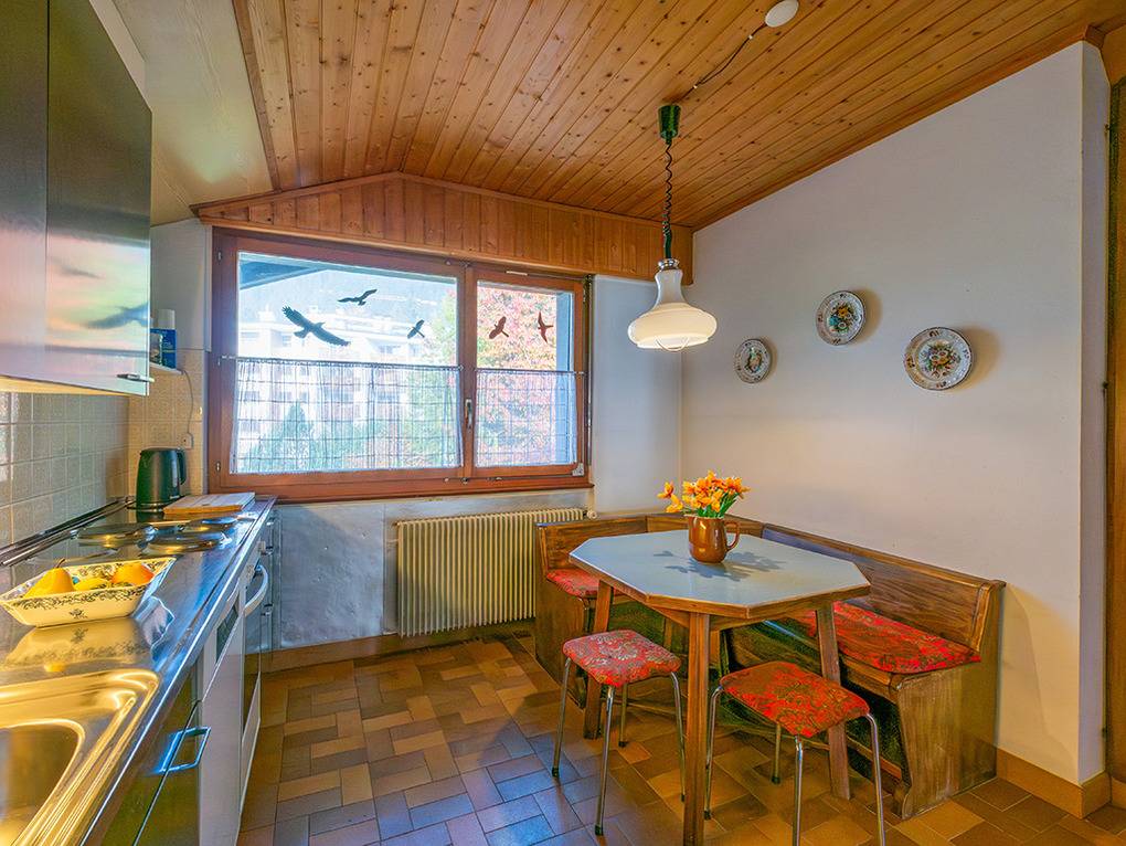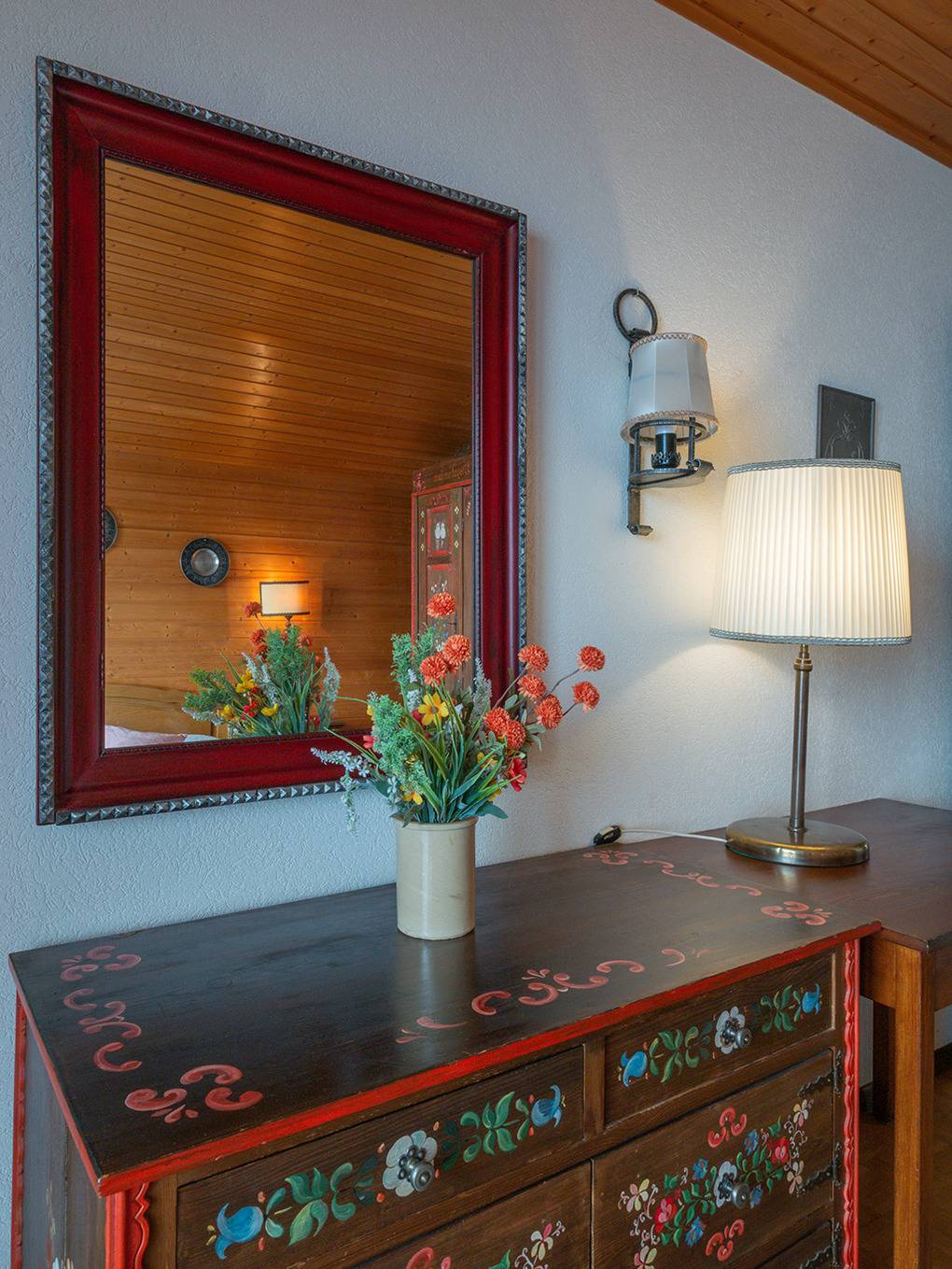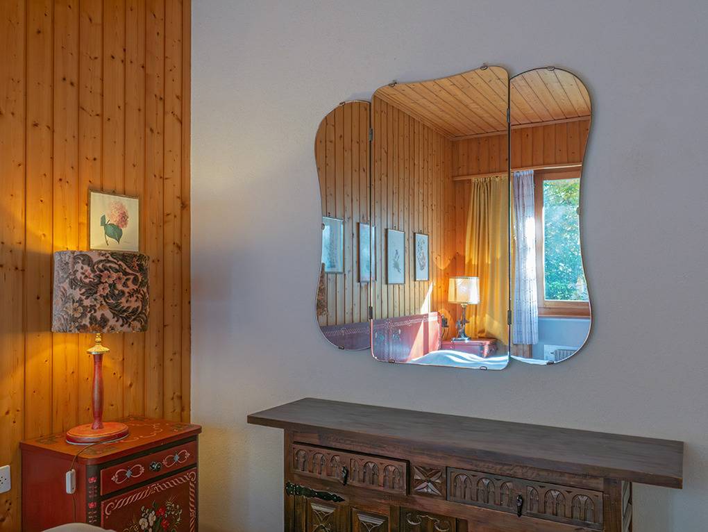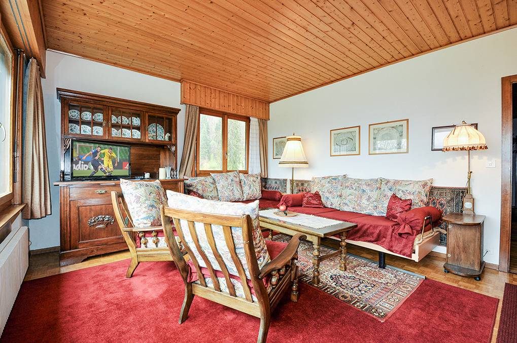 Haus: Großes regionaltypisches Chalet mit Schwimmbad und Sauna. Schönes Wohnhaus mit 2 Ferienwohnungen und der fest bewohnten Wohnung des Vermieters. Bei gemeinsamer Anmietung beider Fewos ergeben sich 6 Zimmer mit 180 qm Wohnfläche, gemeinsames Essen in der oberen Wohnung möglich. Gemütliche Chalet-Atmosphäre durch Holzvertäfelungen in vielen Räumen. Im Haus: großes Schwimmbad (10 x 4,50 Meter, 24°C, kostenfrei nutzbar) mit Ruheliegen vor großen Panoramafenstern, Sauna (Gebühr), Duschen, WC. Internetzugang über W-Lan. Waschmaschine. Zentralheizung. Nichtraucherhaus. Balkon, Terrasse (Sitzmöbel). Tiefgarage mit 4 Pkw-Stellplätzen (max. 1,95 m Höhe), weitere Außenplätze je nach Verfügbarkeit. Hinweise: Betriebszeiten Schwimmbad nur Juli, August. Gemeinschaftsnutzung mit zwei weiteren Fewos im Nachbarchalet. Aufgrund der Bettengrößen ist eine Belegung mit max. 12 Erwachsenen möglich.