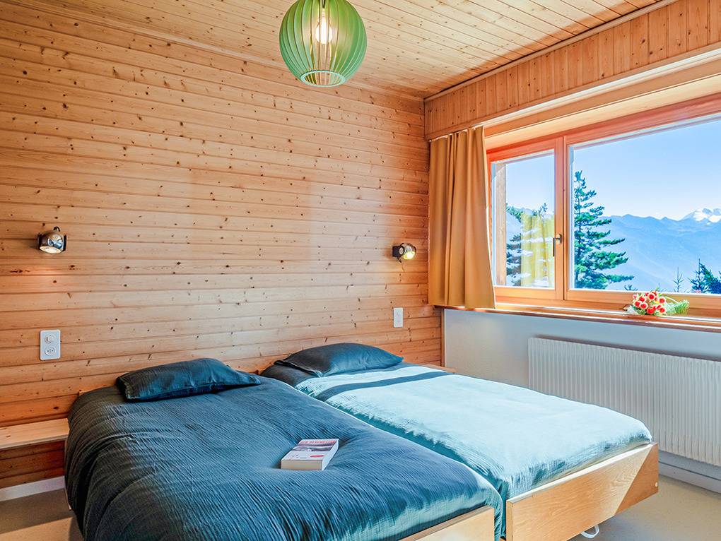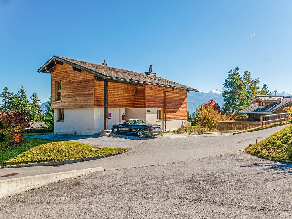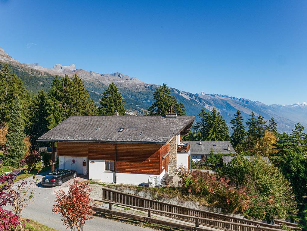 Ort: Crans-Montana. Hervorragende Lage in der Nähe der Talabfahrt: Gondel Les Violettes nur 350 m! Ruhige Lage in einer Chaletsiedlung mit herrlichem Blick auf die imposanten Viertausender des Wallis. Kostenloser Ortsbus 350 m. Bahnhof Standseilbahn 1 km.