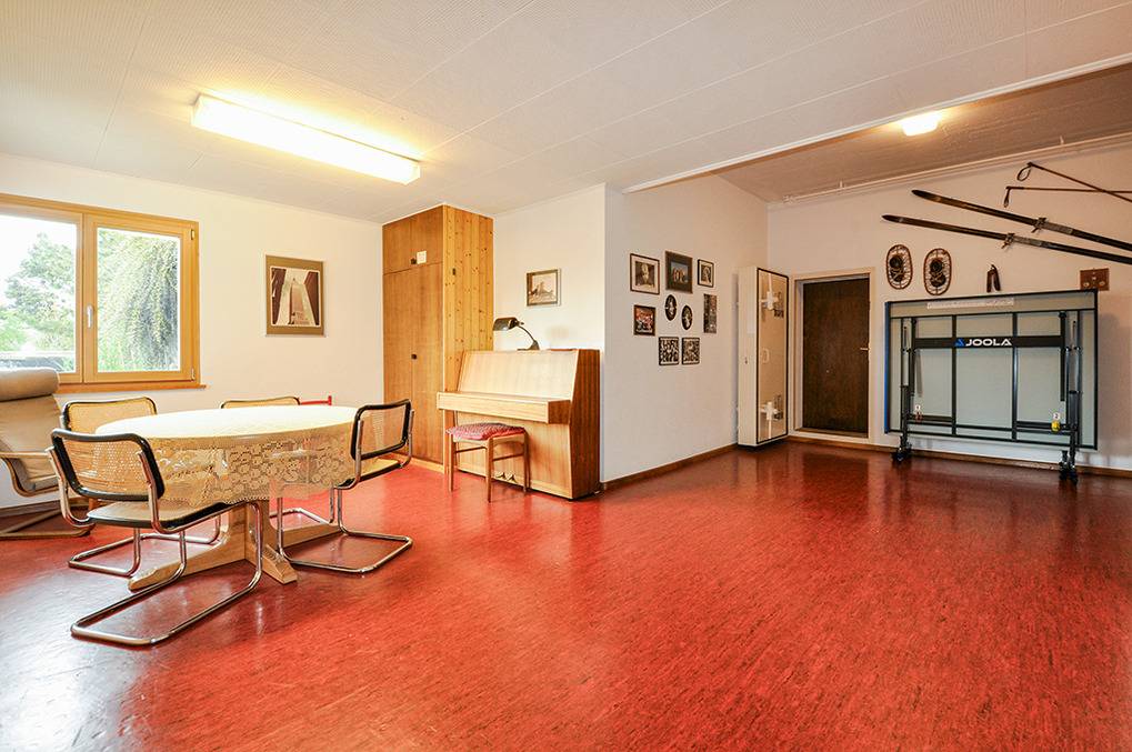 Im Haus (Gemeinschaftsnutzung): großer Aufenthalts- und Spieleraum mit Tischtennis-Platte, Klavier, Sofa. Waschraum mit Waschmaschine, Trockner.