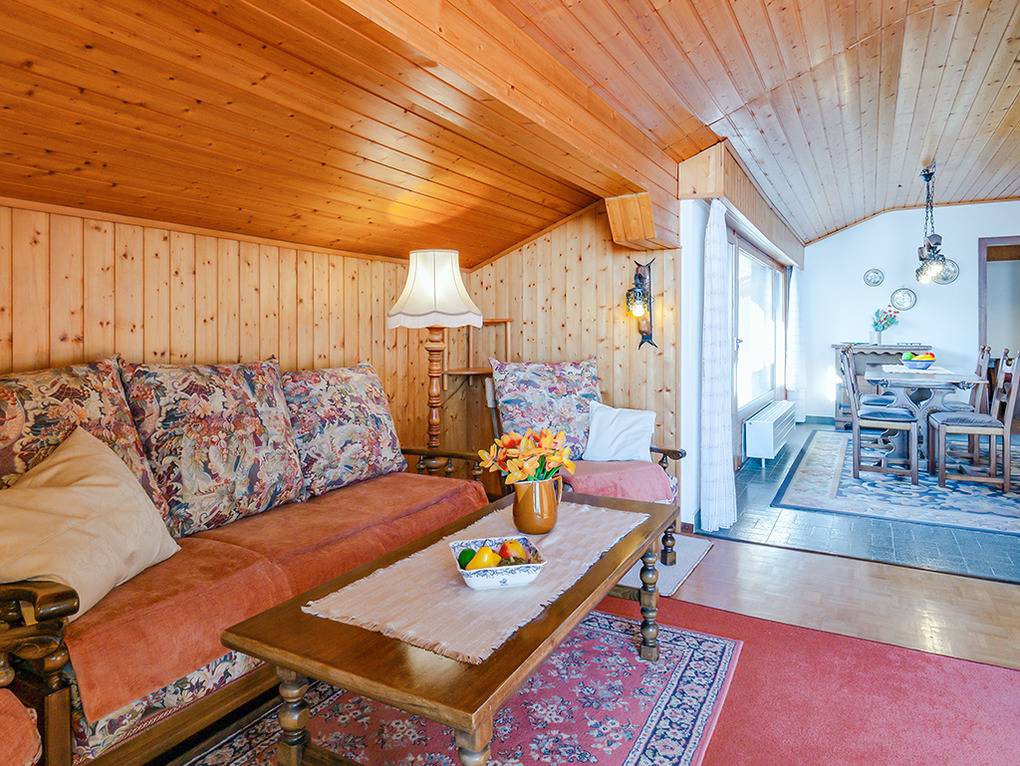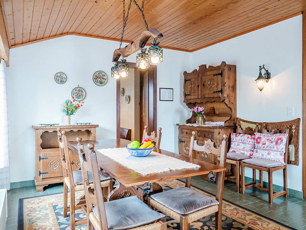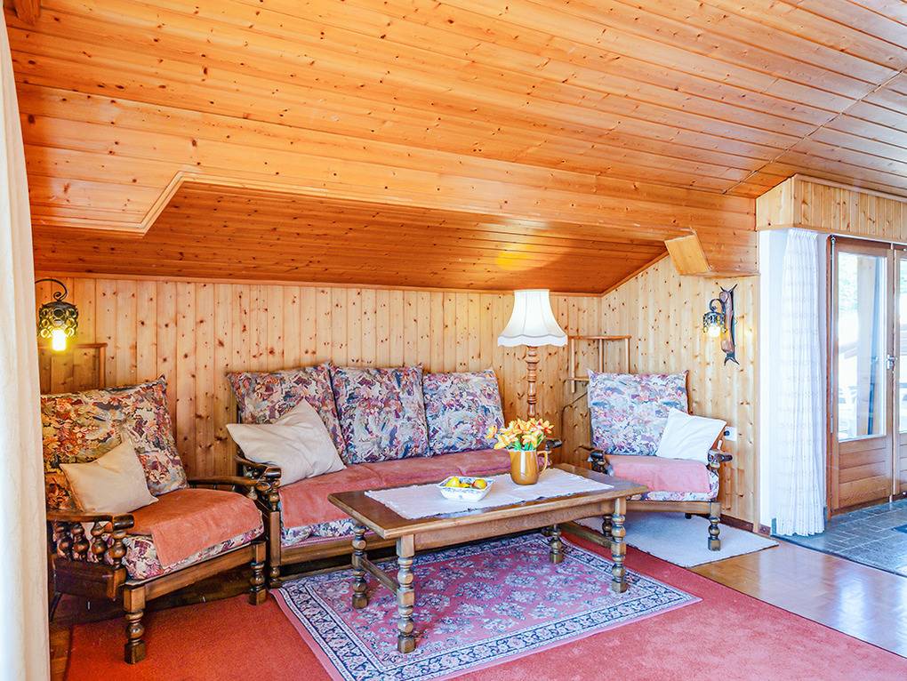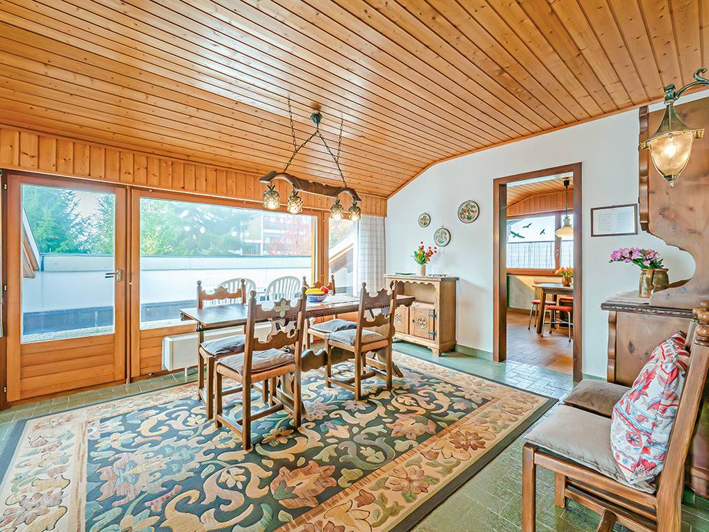 Haus: Großes regionaltypisches Chalet mit Schwimmbad und Sauna. Schönes Wohnhaus mit 2 Ferienwohnungen und der fest bewohnten Wohnung des Vermieters. Gemütliche Chalet-Atmosphäre durch Holzvertäfelungen in vielen Räumen. Im Haus: großes Schwimmbad (10 x 4,50 Meter, 28°C, kostenfrei nutzbar) mit Ruheliegen vor großen Panoramafenstern, Sauna (Gebühr), Duschen, WC. Internetzugang über W-Lan. Waschmaschine. Zentralheizung. Nichtraucherhaus. Balkon oder Terrasse (Sitzmöbel). Tiefgarage mit 2 Pkw-Stellplätzen pro Fewo (max. 1,95 m Höhe), weitere Außenplätze je nach Verfügbarkeit. Hinweis: Betriebszeiten Schwimmbad nur von Weihnachten bis Ostern. Gemeinschaftsnutzung mit zwei weiteren Fewos im Nachbarchalet.