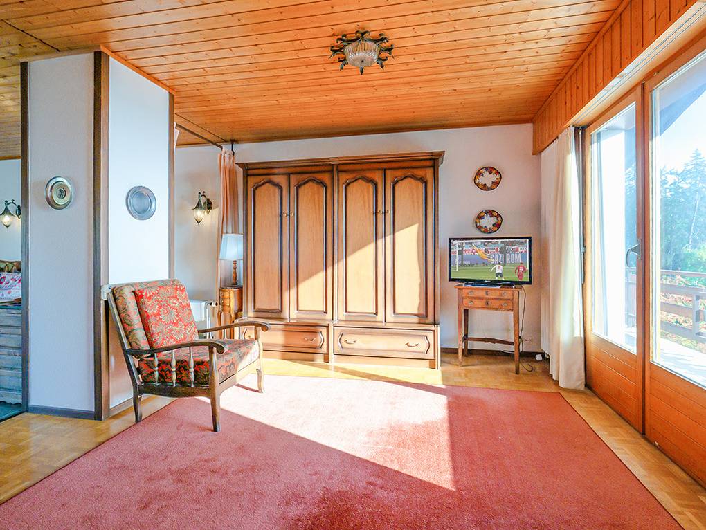 Nebenkosten: Endreinigung 110 € (wird bei Buchung erhoben). Bettwäsche leihbar 12 CHF/Pers (Bestellung). Handtücher leihbar 8 CHF/Pers (Bestellung). Zusätzliche Leistungen Wlan inklusiv. Schwimmbad Nutzung inklusive (20.12.25 - 11.04.26). Sauna 15 CHF/Stunde. 2 Gagarenstellplätze inklusive. Kurtaxe im Preis inklusiv. Babybett zusätzlich zur maximalen Personenzahl ohne Berechnung (Bestellung). Haustier nicht erlaubt.Räume & Aufteilung