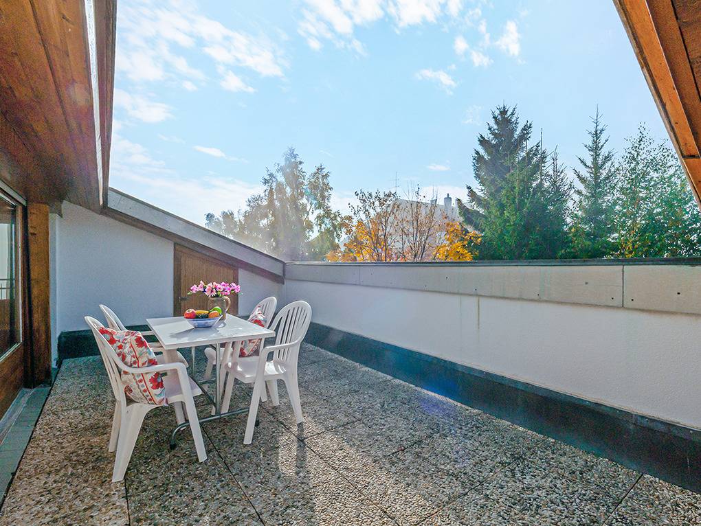Ch 361.19 Wohnung 1-7 Pers.: 3-Zimmerwohnung mit 95 qm Wohnfläche, 2. Etage (leichte Dachschrägen). Flur mit Garderobe. Gemütlicher Wohnraum (40 qm) mit Wohn-/Schlafbereich (Sofa-Sitzgruppe, Kabel-TV, 2 komfortablen Schrankbetten, Balkon, herrlichem Blick ins Rhônetal). Freundlicher Essbereich mit Esstisch, Dachterrasse (Sitzmöbel). Küche mit Backofen, Mikrowelle, Spülmaschine. Doppelzimmer mit Balkon. 3-Bettzimmer mit 2 Einzelbetten, kleinem Zustellbett für Kinder (75 x 170 cm). Bad: Bw/Du, Wb, WC, Bidet. Separates WC. Hinweis: Wir empfehlen eine Belegung mit 4-6 Personen. Aufgrund der Bettengrößen ist eine Belegung mit maximal 6 Erwachsenen möglich.