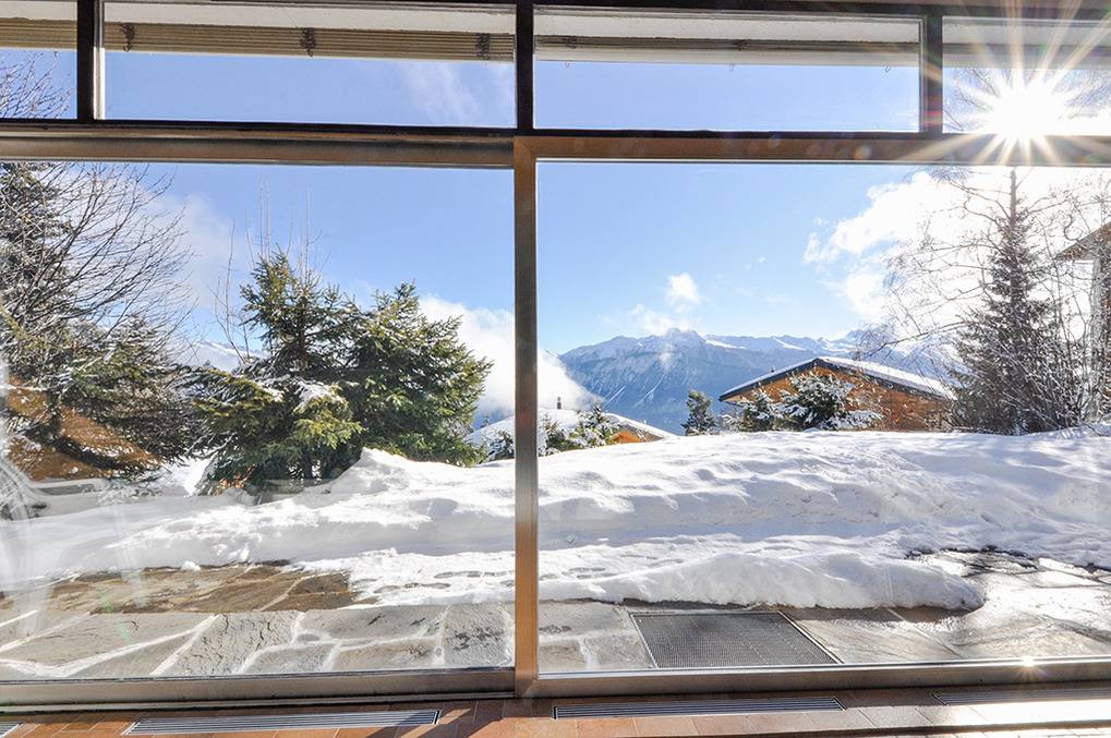 Ort: Crans-Montana. Optimaler Standort: Talstation Les Violettes-Gondelbahn nur 150 m! Skiabfahrt bis in die Nähe des Hauses. Ruhige Lage mit herrlichem Blick auf die imposanten Viertausender des Wallis. Bahnhof Standseilbahn Crans-Montana 1 km. Ortsmitte Montana ca. 2 km. Skibus nur 100 m.