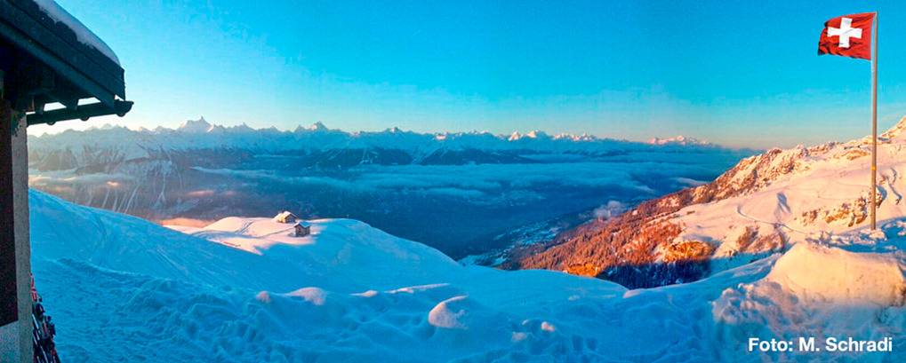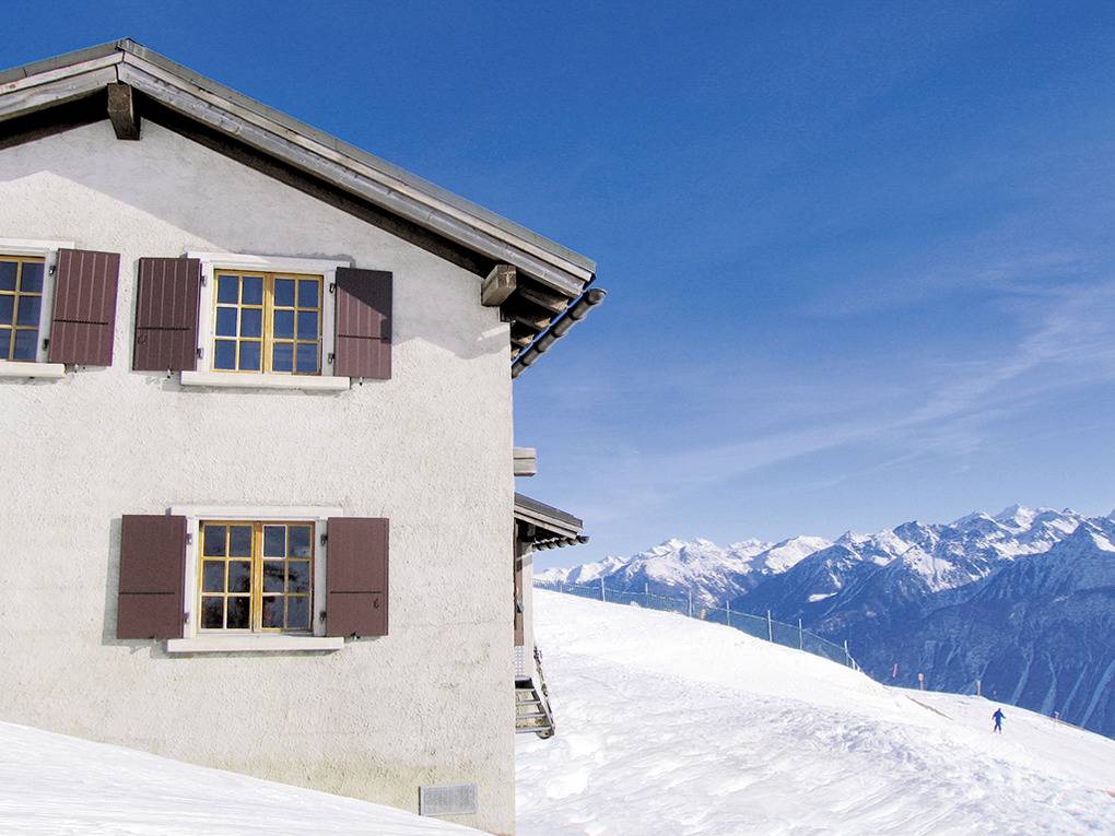 Ort: Aminona. Hervorragende Lage mitten im Skigebiet Crans-Montana, in 2200 m Höhe. Herrlicher Bergblick. Zufahrt nur mit der Gondel, anschließend leichte Skiabfahrt (Ziehweg) und Sesselliftbergfahrt zum Haus. Gepäck, Lebensmittel werden mit dem Ratrak transportiert (Gebühr). Skiabfahrt vom und bis zum Haus.
