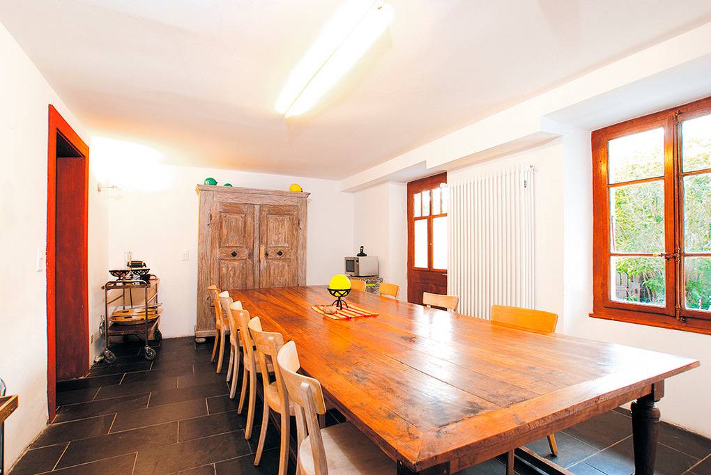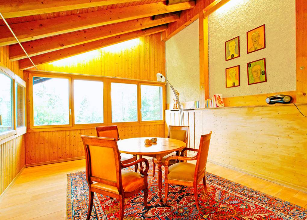 Haus: Sehr schönes Chalet mit Sauna. Enormes Platzangebot mit 350 qm Wohnfläche über 4 Etagen. 4 Tagesräume, 8 Schlafräume, 5 Bäder! Internetzugang über W-Lan. Zusätzliche kleine Küchen, Balkone auf jeder Etage. Zentralheizung. Vorratsraum. Großer, naturbelassener Garten in Hanglage mit altem Baumbestand. Große Dachterrasse mit Blick auf die umliegende Bergwelt. Mehrere Sitzecken im Garten, ältere Sitzmöbel. 4 Pkw-Stellplätze am Haus.