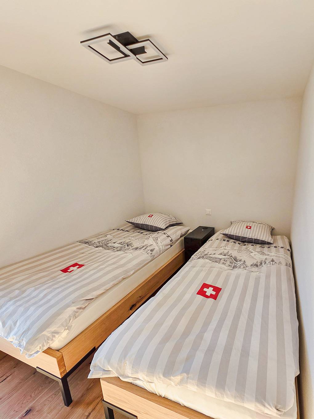 Nebenkosten : Endreinigung 165 € (wird bei Buchung erhoben). Müllsäcke nach Verbrauch. Kurtaxe wird vor Ort bezahlt. Bettwäsche, Handtücher stellt der Vermieter 16,50 €/Pers (wird bei Buchung erhoben). Zusätzliche Leistungen 2 Pkw-Stellplätze im Preis inklusive. Internet kostenlos über W-Lan. Kaution 500 CHF. Babybett zusätzlich zur maximalen Personenzahl ohne Berechnung. Haustier nicht erlaubt.Räume & Aufteilung