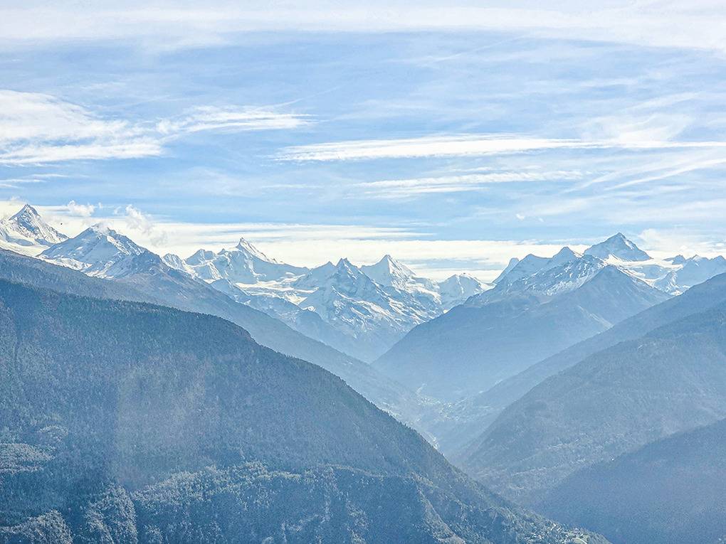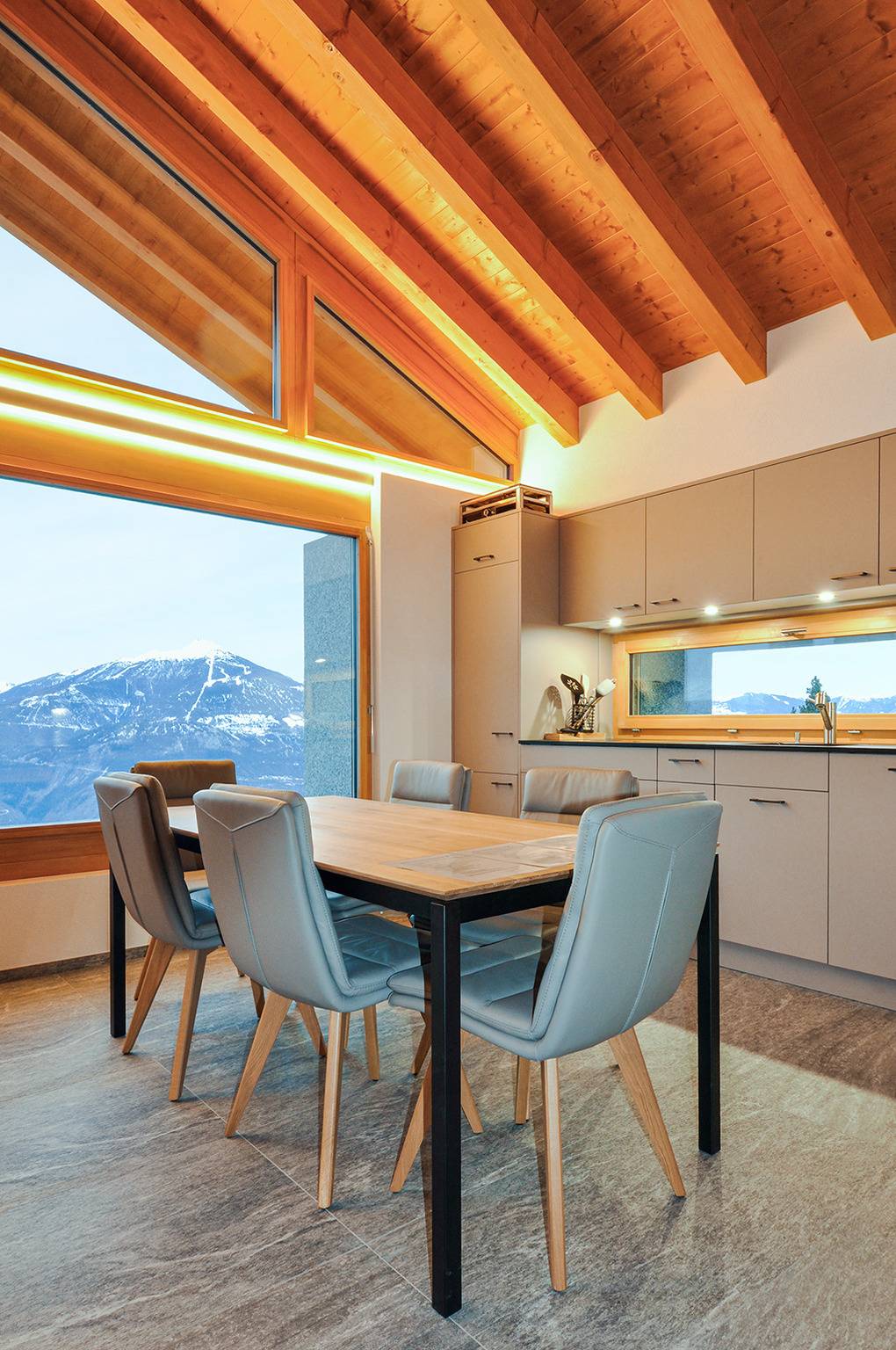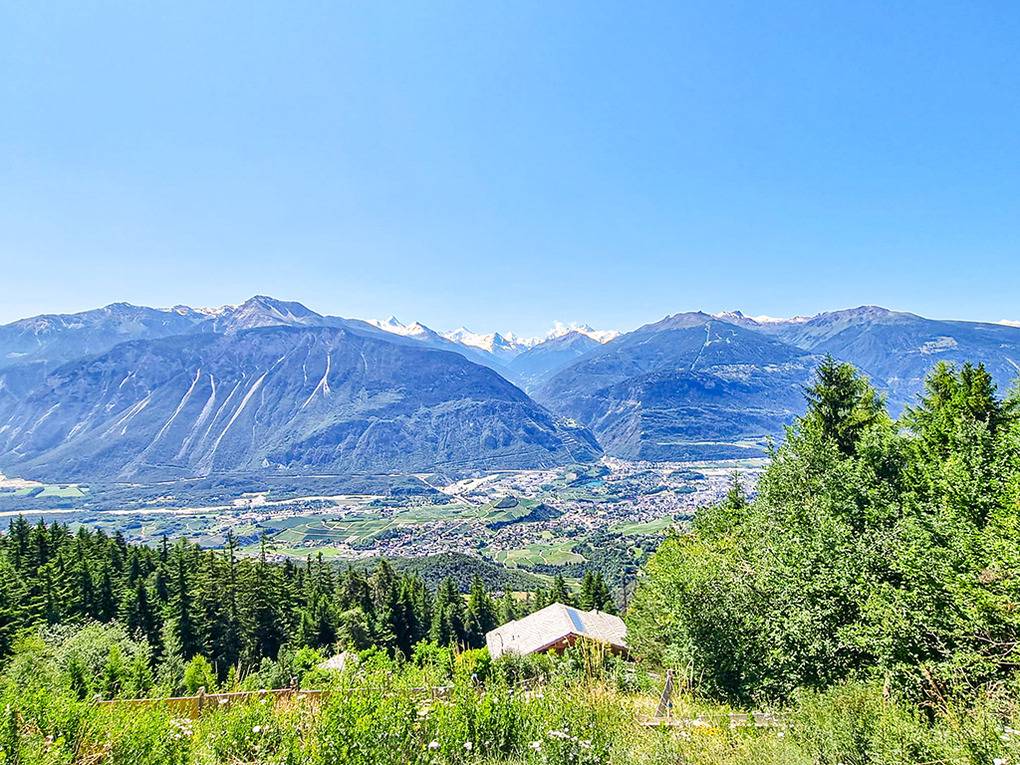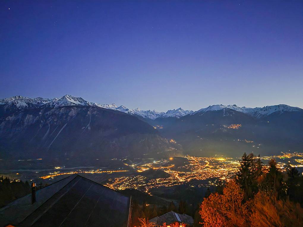Ort: Aminona. Ruhige Hanglage mit wunderschönem Panoramablick ins Rhônetal und auf die Walliser Alpen. Kleine Chaletsiedlung am Ortsrand mit schönen, individuellen Chalets. Ortsmitte Aminona mit Talabfahrt 900 m. Skibus 800 m. Crans-Montana mit Gondel, Restaurants, vielen Geschäften 3,8 km.