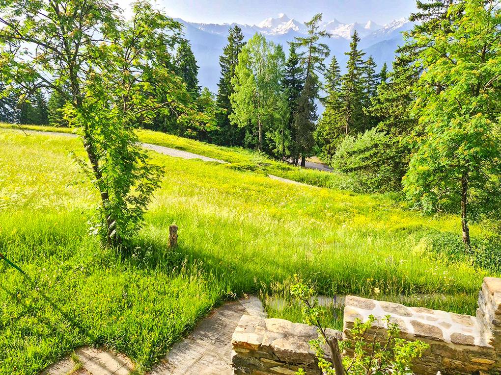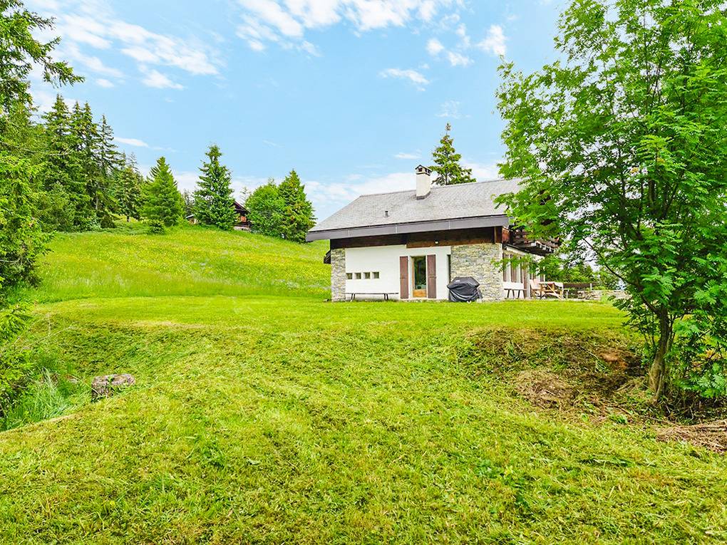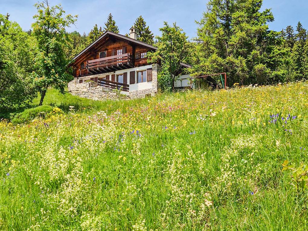 Ort: Crans-Montana. Herrlich ruhige, idyllische Hanglage auf 1.600 m Höhe, oberhalb des Ortes, umgeben von Almwiesen und altem Baumbestand. 7.000 qm großes Grundstück, begrenzt durch einen kleinen Gebirgsbach. Sehr schöner Blick auf die Berge des Alpenhauptkamms. Schöne Wanderwege, zum Beispiel entlang der Suonen, nach Plumachit oder zum Trubelstock verlaufen in unmittelbarer Nähe des Hauses (ca. 150 m). Kostenloser Orts-Bus 400 m. Gondel mit Sommerbetrieb 1,4 km. Bahnhof Standseilbahn Crans-Montana 2,5 km. Ortsmitte Montana mit vielen Geschäften, Restaurants ca. 3 km. Badesee Moubra 4 km. Guter Standort für Tagesausflüge: Kantonshauptstadt Sion mit schöner Altstadt 25 km. Bettmeralp mit Aletschgletscher 60 km. Zermatt mit Matterhorn 70 km.