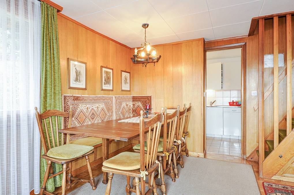 Haus: Schönes Chalet mit Schwimmbad und Sauna im Nebengebäude. 2 Ferienwohnungen mit separaten Zugängen, die einzeln oder gemeinsam vermietet werden. Rustikal-gemütliche Chalet-Atmosphäre mit Holzvertäfelungen in vielen Räumen. Bereits ältere, aber sehr gepflegte Einrichtung. Internetzugang über W-Lan. Zentralheizung. Nichtraucherhaus. Balkon oder Terrasse (Sitzmöbel). Tiefgarage mit 1-2 Pkw-Stellplätzen pro Fewo (max. 1,95 m Höhe), weitere Außenplätze je nach Verfügbarkeit. Im Nachbarhaus: großes Schwimmbad (10 x 4,50 Meter, 28°C, kostenfrei nutzbar) mit Ruheliegen vor großen Panoramafenstern, Sauna (Gebühr), Duschen, WC. Waschmaschine. Hinweise: Betriebszeiten Schwimmbad nur von Weihnachten bis Ostern. Gemeinschaftsnutzung mit zwei weiteren Fewos im Nachbarhaus. Geringe Schallisolierung zwischen der oberen und der unteren Wohnung.