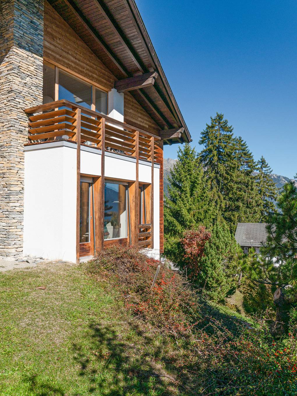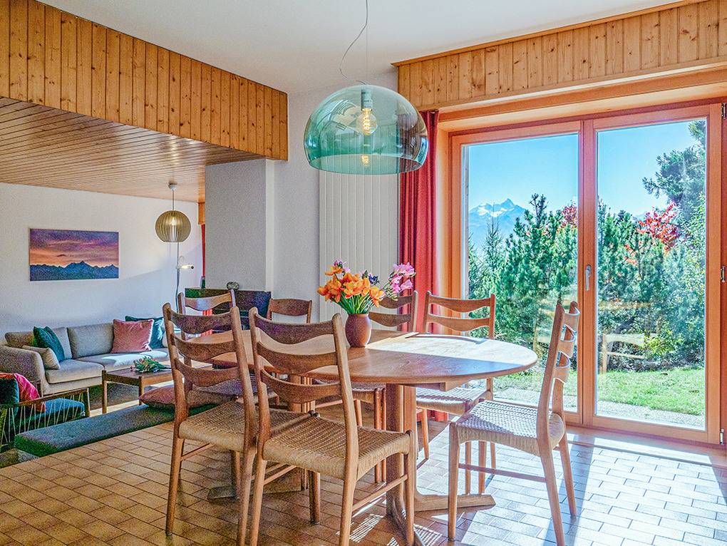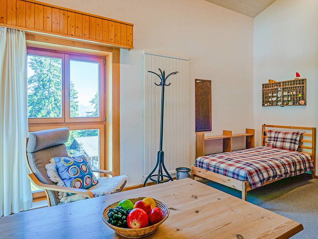 Ort: Crans-Montana. Ruhige Lage mit herrlichem Blick auf die imposanten Viertausender des Wallis. Ortsmitte Montana mit vielen Geschäften, Restaurants 2 km. Golfplatz, Badesee Moubra je 3,5 km. Kostenloser Ortsbus, Gondel mit Sommerbetrieb jeweils 350 m. Bahnhof Standseilbahn 1 km. Viele Wanderwege verlaufen in der Nähe des Hauses (ca. 400 m).