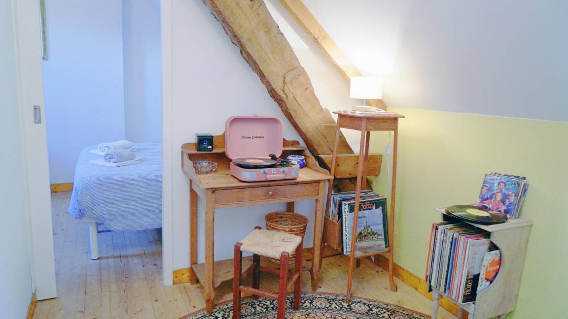 Dieses Küstendorf, das für den Anbau von Sandkarotten bekannt ist, ist friedlich und verfügt über einen herrlichen wilden Strand. Gilles und seine Schwester Nathalie erzählen Ihnen vom Haus ihres Großvaters und ihrer Familiengeschichte. Viele alte Gegenstände liegen verstreut herum, darunter auch die Vinyl-Sammlung im Entspannungsbereich... Der geschützte Garten ist an sonnigen Tagen sehr angenehm und das Schlafzimmer im Erdgeschoss erfreut Urlauber. Da es ganz in der Nähe der Dünen liegt, werden Sie auch die Nähe der wenigen Geschäfte des Dorfes zu schätzen wissen. Auch Lessay mit seiner Abtei und seinem tausendjährigen Septemberfest liegt ganz in der Nähe.