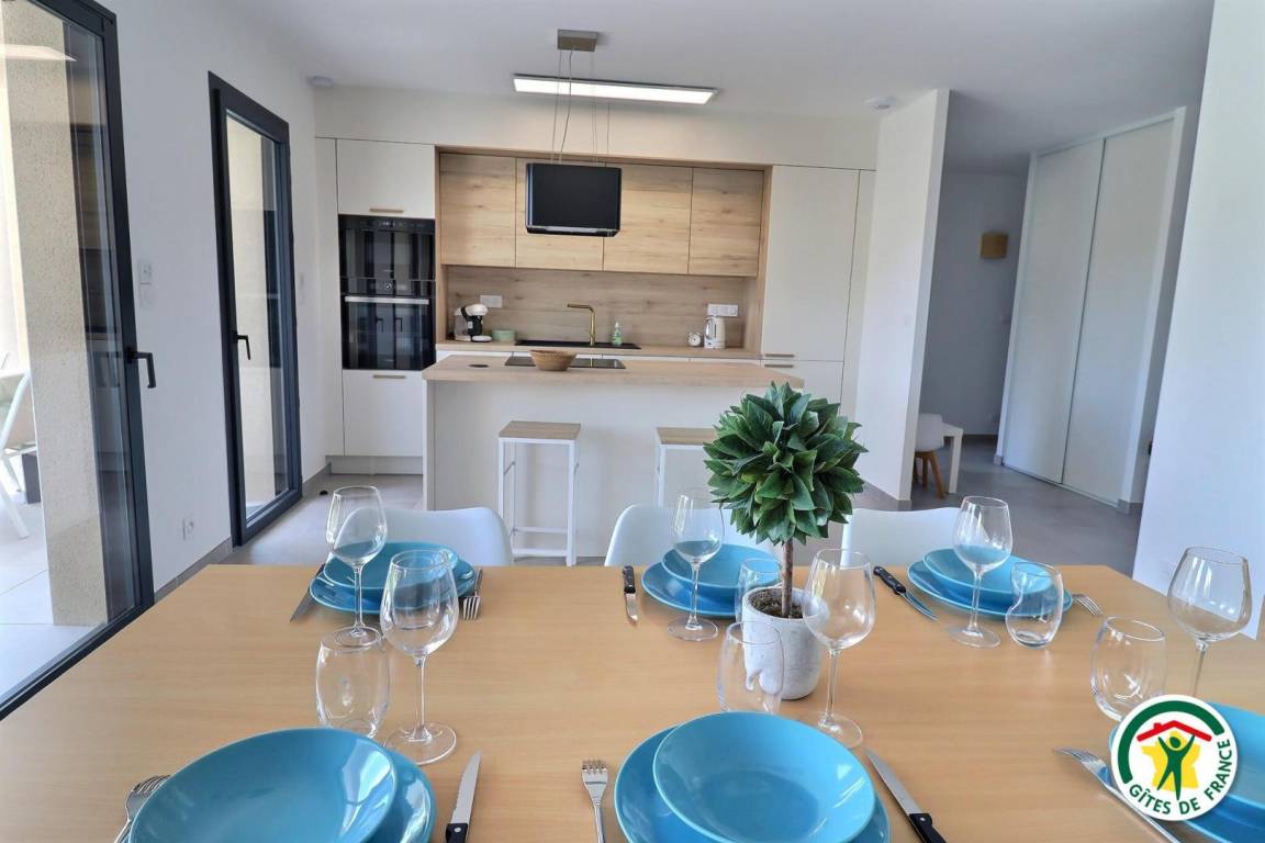 „Logement agréable, silencieux, aménagé avec goût et neuf. Lits confortables. Accueil sympathique mais un petit peu trop bref car la propriétaire travaillait puis partait aussi en vacances. Numéro de téléphone de service de conciergerie en cas de problème (ce qui n'a pas été le cas car nous avons fini par trouver les modes d'emploi des chauffages incrusté dans les appareils électriques des chambres et tout ce dont nous avons eu besoin a fonctionné correctement hormis l'aspirateur un peu faible) et au départ, personne de la conciergerie était également sympathique et ponctuelle. Attention par contre à la facture des gites de France qui mentionne un montant important de frais de services trompeurs...“