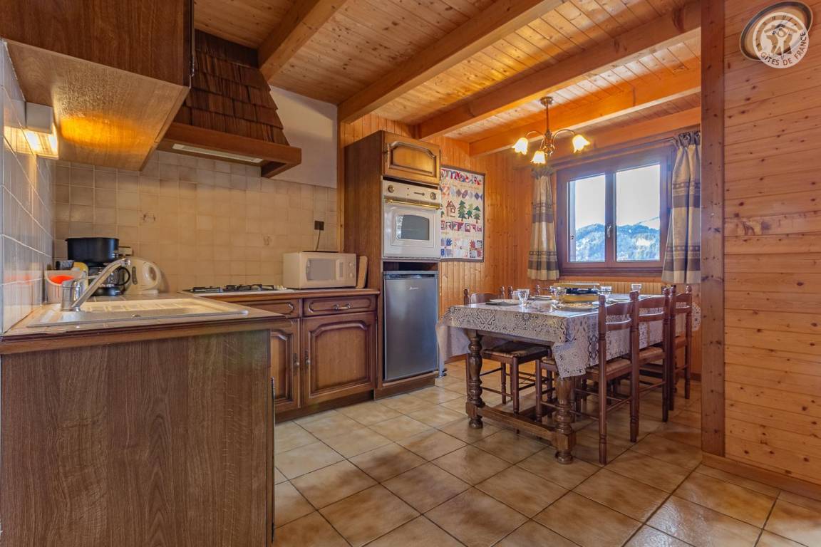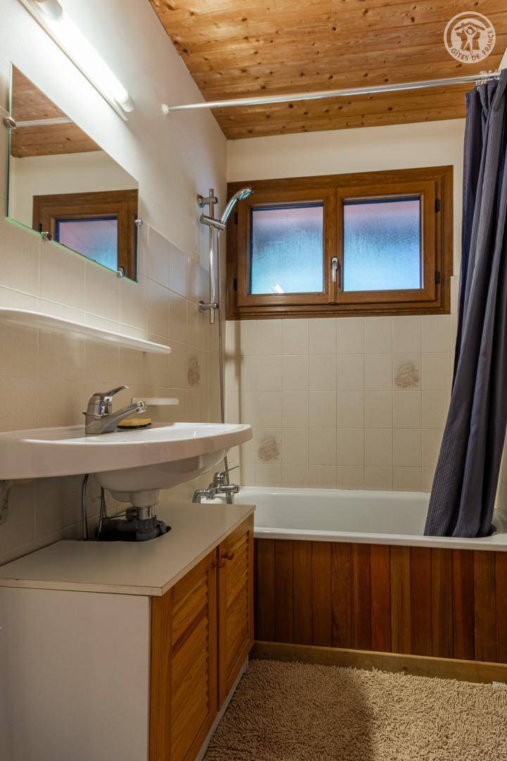 2 Gîtes im Haus des Eigentümers. 1. Etage (gemeinsamer Eingang über eine Außentreppe): Wohnküche, Loungebereich, 2 Schlafzimmer (3 Einzelbetten / 2 Einzelbetten), Badezimmer (Badewanne), separates WC. Große, nicht angrenzende Gemeinschaftsterrasse. Gericht. Skigebiet Crest-Voland-Verbindung Espace Diamant 300 m, Notre Dame de Bellecombe 4 km, Les Saisies 8 km. Flumet entwickeltes Gewässer 8 km.