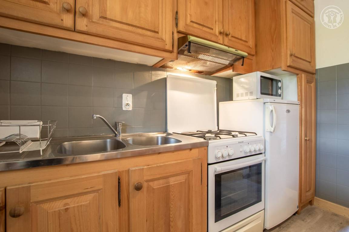 Gîte im Erdgeschoss. Küche. Wohnzimmer. 2 Schlafzimmer (1 Doppelbett 140x190 cm / 2 Etagenbetten 90x190 cm). Duschbad mit WC. Balkon. Gemeinsame Waschmaschine und Trockner. Gemeinsamkeit. Whirlpool im Sommer.