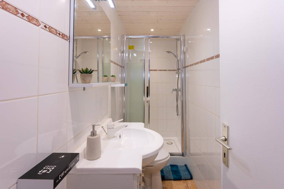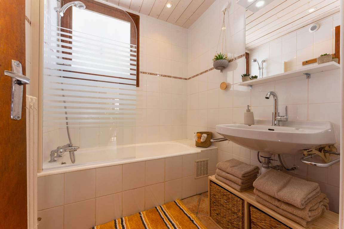Ferienhaus im Haus des Eigentümers (unabhängiger Zugang), ebenerdig im Erdgeschoss. Wohnzimmer-Küche-Wohnbereich, 4 Schlafzimmer (1 Doppelbett 140x190 cm / 1 Doppelbett 140x190 cm / 1 Doppelbett 140x190 cm + 2 Etagenbetten 90x190 cm / 4 Etagenbetten 90x190 cm), Duschbad (Dusche + WC ), Badezimmer (Badewanne), separates WC. Waschküche und Abstellraum für Ski und Fahrräder. Offenes Gelände, 2 private Terrassen, privater Parkplatz.