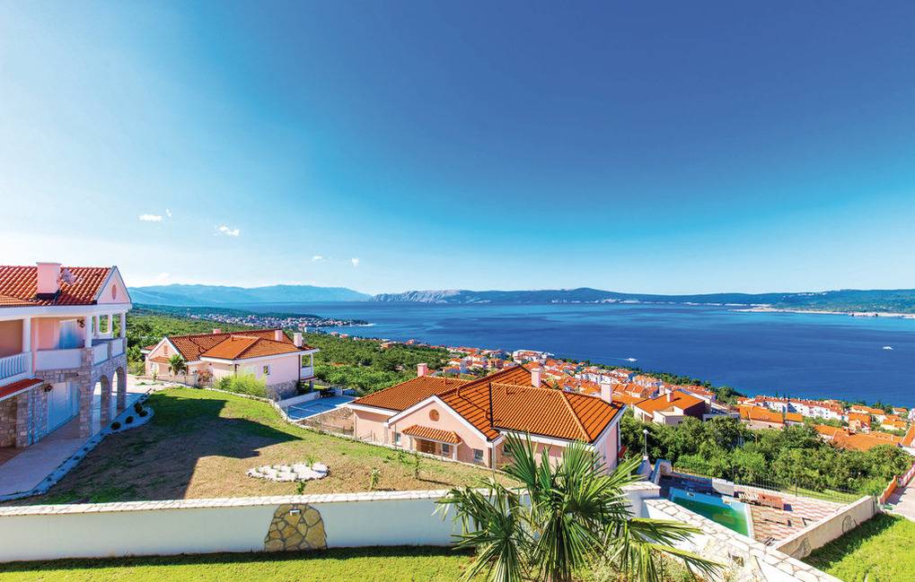 Das Ferienhaus "SeaView" Crikvenica befindet sich am oberen Ende von Crikvenica Stadt und ist Luftlinie ca. 1,3 km vom Zentrum von Crikvenica, 2,2 km vom Zentrum von Selce und ca. 8 km vom Zentrum von Novi Vinodolski entfernt. Zum Meer und dem Strand sind es ca. 700 Meter (Luftlinie). Das Haus selbst besteht aus drei nebeneinander angeordneten zweistöckigen Wohnungen mit insgesamt 10 Zimmern (7 Schlafzimmer und 3 Wohnzimmer) und 9 Bädern (Dusche, Waschbecken, WC). Jede Wohnung hat im Erdgeschoß direkten Zugang zu einer eigenen Terrasse (teilweise überdacht) und dem gemeinsamen Garten sowie dem beheizbaren Pool mit Salzelektrolyse-Reinigungssystem. Zwischen den Wohnungen besteht keine interne Verbindung. Alle Zimmer verfügen über eine eigene und einzeln steuerbare Klimaanlage. W-Lan im und außerhalb des Gebäudes. Das Grundstück selbst ist mit Zaun und Mauer vollständig geschlossen, 930m² groß, mit Rasen, mediterranen Pflanzen, Steinplatten, einem Holzgrill, 5 eigenen Parkplätzen und Panoramaausblick auf das Meer, den Velebit und die Insel Krk.