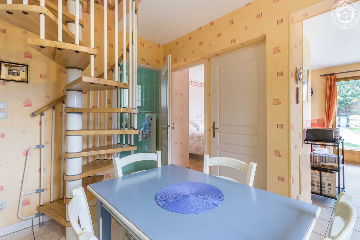 Ferienhaus im Nebenhaus des Eigentümers. Auf 2 Ebenen mit unabhängigem Zugang und auf einer Ebene. Erdgeschoss: Eingangshalle, Wohnzimmer-Küche mit Sitzecke, CD/Radio/MP3/Vinyl-Player, Blu-Ray-DVD, 1 Schlafzimmer (1 Bett 140 x 190 cm Memory Foam-Matratze), Badezimmer mit Wasser (große Dusche), separat TOILETTE. Obergeschoss (Zugang über eine Wendeltreppe): 1 Schlafzimmer (2 Einzelbetten), Duschbad mit WC. Elektrische Rollläden. Bettwäsche und Haushaltswäsche inklusive. Betten bei Ankunft bezogen. Asphaltierte Terrasse. Eingezäuntes und gemeinsames Grundstück. Ski Alpin und Langlauf in La Féclaz. Gewässer (beaufsichtigtes Schwimmen) mit Freizeitbasis in St. Pierre d'Albigny 9 km entfernt.