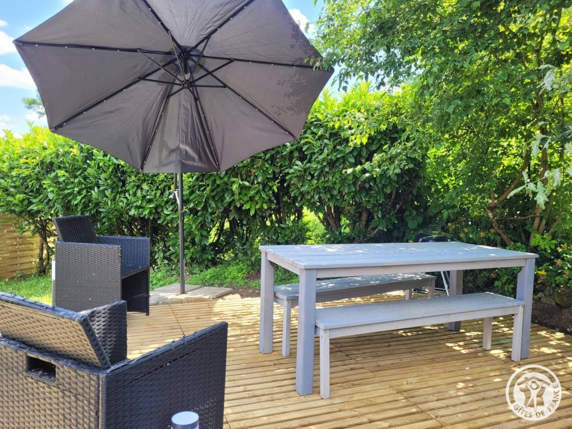 „Le logement est très agréable pour une famille, décoré avec goût et complétement équipé (lave-linge, lave-vaisselle, climatisation très appréciée lors d'un épisode de canicule..), facile d'accès, sûr et très privatif (parking, portail motorisé, eclairages automatiques).Panier d'accueil et nombre de petites attentions, sourire, écoute sont les maîtres-mots des propriétaires. La terrasse, joliement eclairée, disposant d'un bbq et d'une plancha gaz, permet des repas de plein-air agréables, reposants. Télévision dans toutes les pièces, et de surcroît un Wifi très performant. 2 salles de bains parfaites dont une parentale. L'accueil, l'écoute et la réactivité des propriétaires sont tout simplement parfaits: Rappellons que nous inaugurions cette location neuve et qu'ils ont été particulièrement attentifs à notre confort et nos avis de premiers rentrants :), toujours avec grande discrétion. Bref, nous nous sommes sentis chez nous pendant 2 semaines. Les grands axes routiers très proches desservent une région riche et belle, hautement touristique mais respirante, et les petites routes de campagne offrentdes vues magnifiques et des villages de charme. La mitoyenneté avec Terrasson-Lavilledieu conjugue tous les services à moins de 3 kms (grands commerces, artisanat et restaurants atypiques, visites, piscine..) . Le lac de Causse est à 12 kms, permettant des journées de plage et d'activités nautiques régal des enfants. Point de départ tout autant que 'camp de base' par ses accès routiers, le gîte est l'endroit idéal pour découvrir la richesse des visites environnantes et les nombreux points d'attractivité, tout autant qu'une douceur de vivre au quotidien. Une mention également au professionnalisme souriant du personnel des Gîtes de France. Nous reviendrons avec beaucoup de plaisir, et avec hâte.“