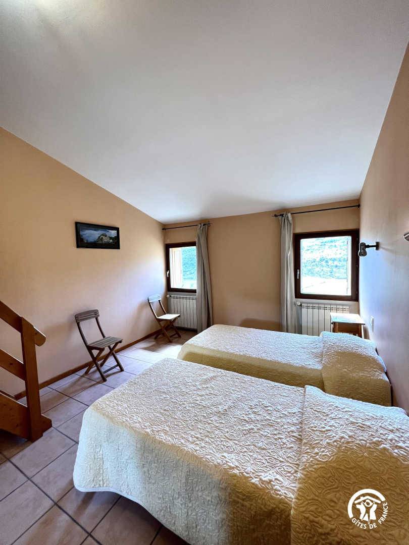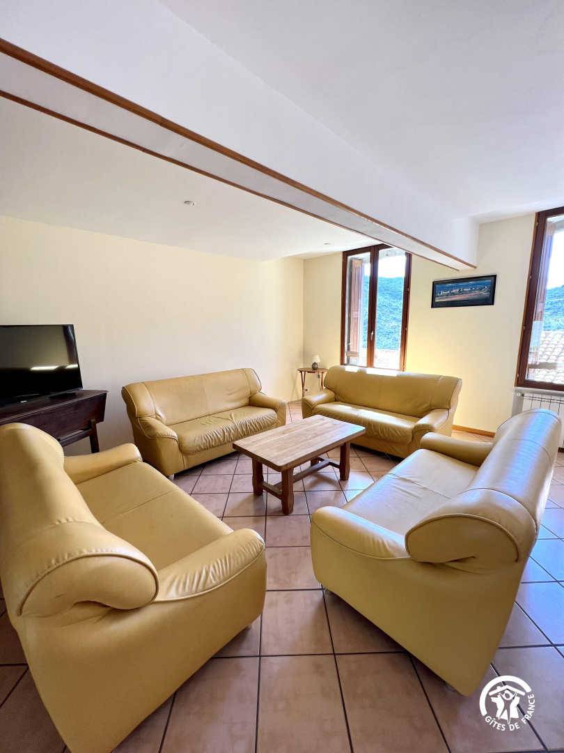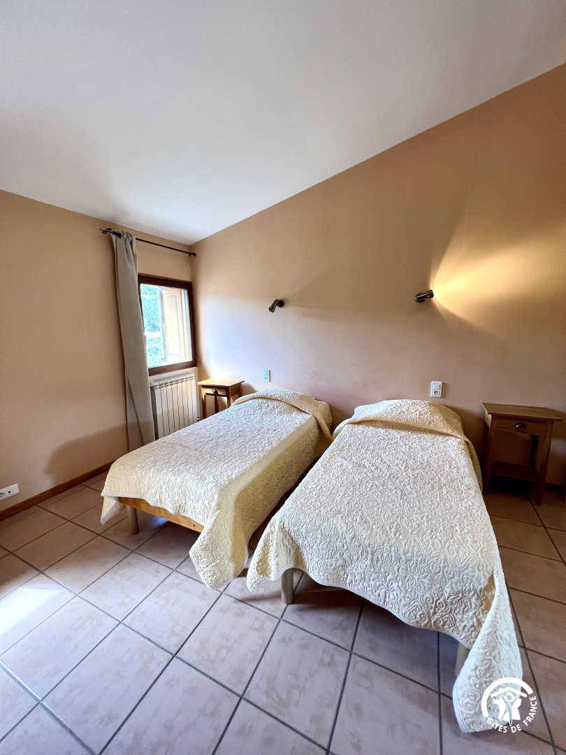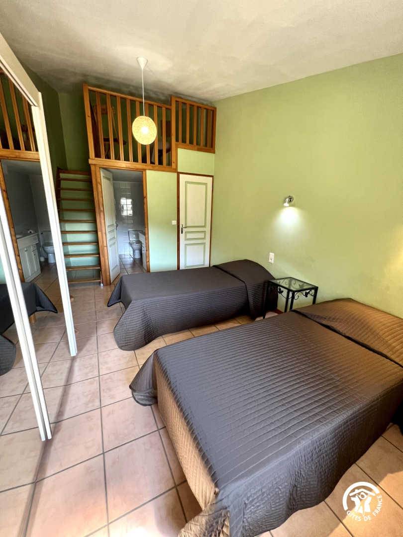 Große private Terrasse von 50 m ² mit Gartenmöbeln und Grill mit Blick auf die voll ausgestattete Küche (offener Kamin). Großes Wohnzimmer (TV) mit toller Aussicht auf die chateau.1chbre mit 1 Bett, 2 pers., Dusche und wc. Obergeschoss: 3 Schlafzimmer (2 Betten 2 + 2 Betten 1 Person) inklusive 1 mit Dusche und wc. Bad und wc IND.-santolines.fr. Betten sind bei Ankunft gemacht.